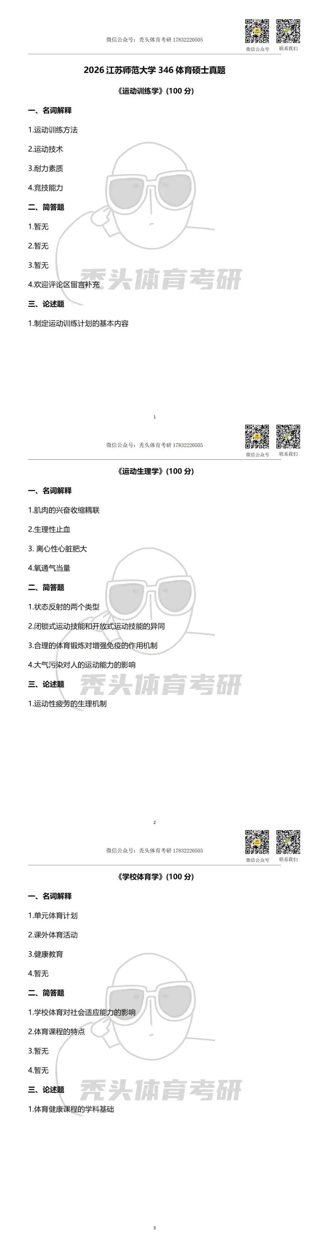 26体育考研真题丨江苏师范大学346体育综合初试真题(2026)