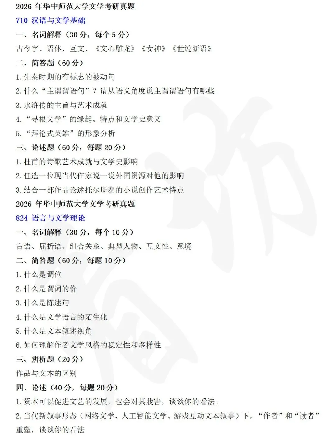 总结而言,华中师范大学2026年文学考研真题呈现出“基础扎实、层次分明、注重思辨、关切现实”的鲜明特点。备考者应在全面