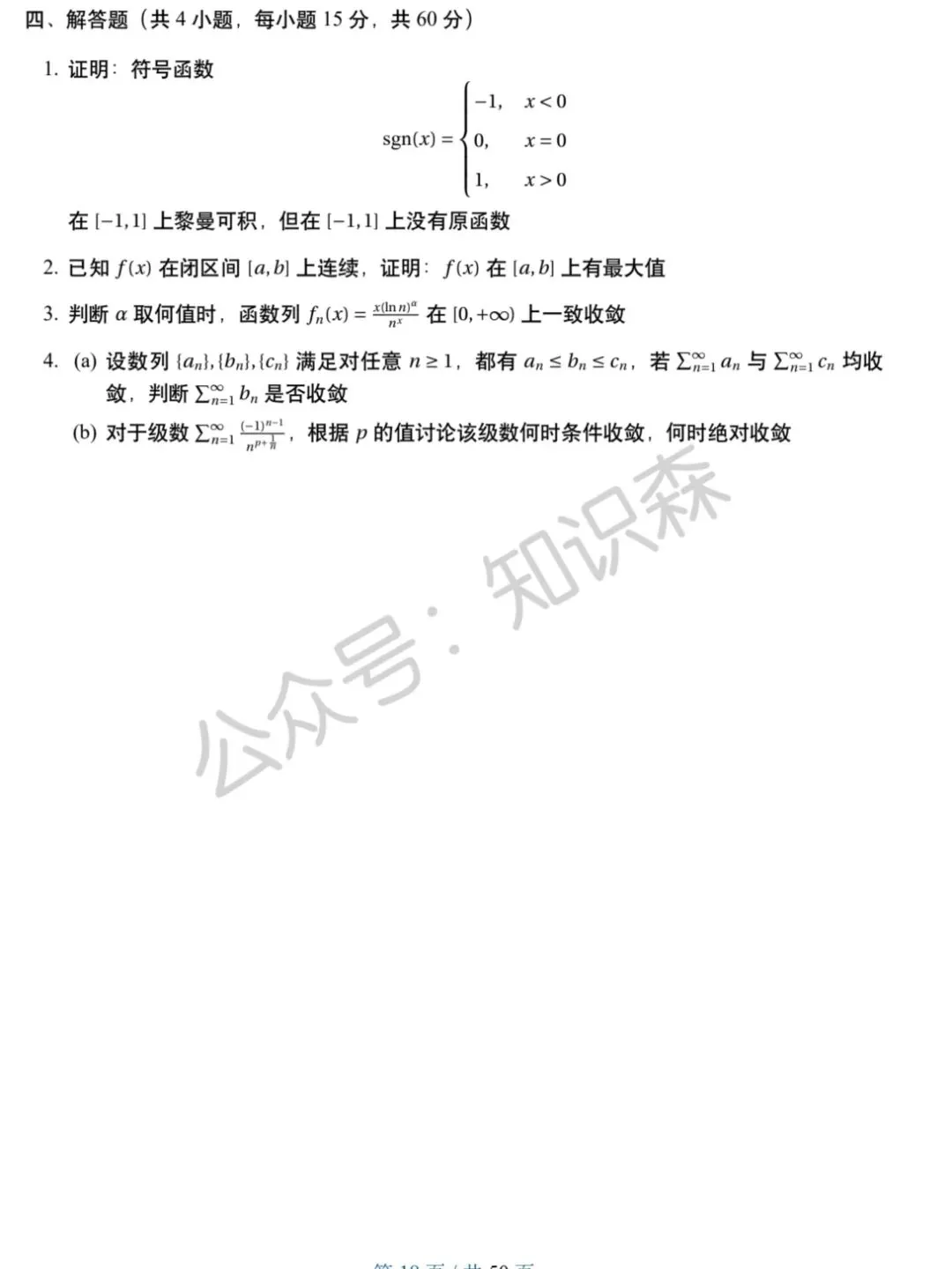 2026年上海科技大学数学分析考研真题及详细参考解答