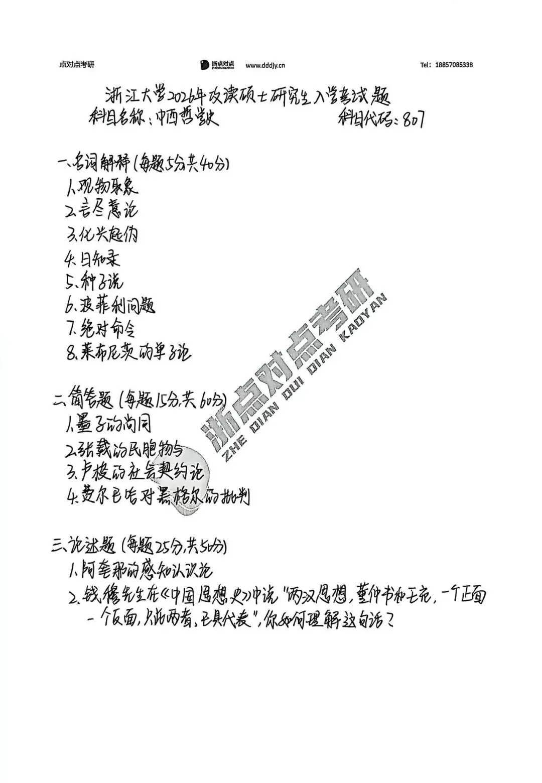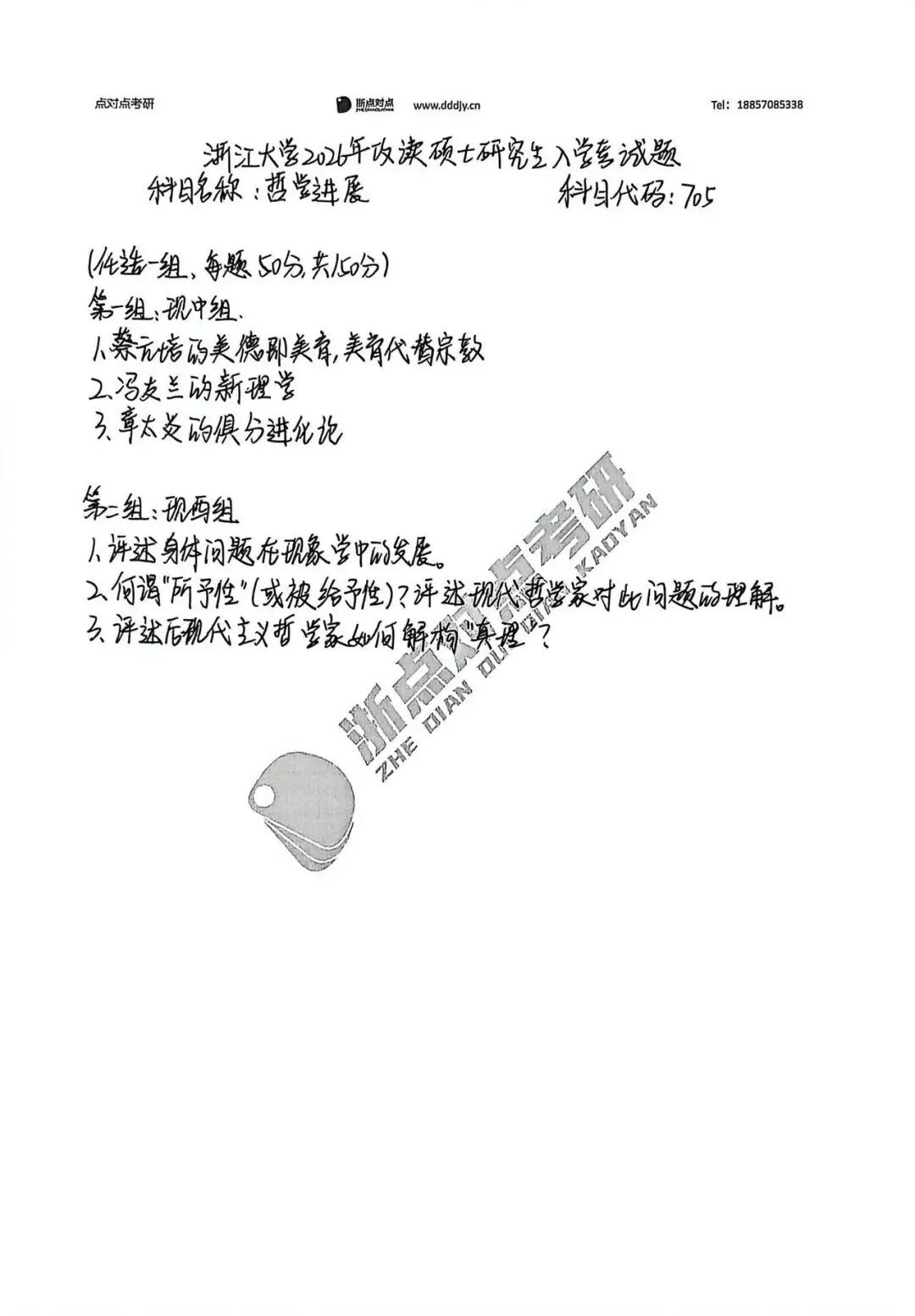 浙江大学2026考研705哲学进展、807中西哲学史