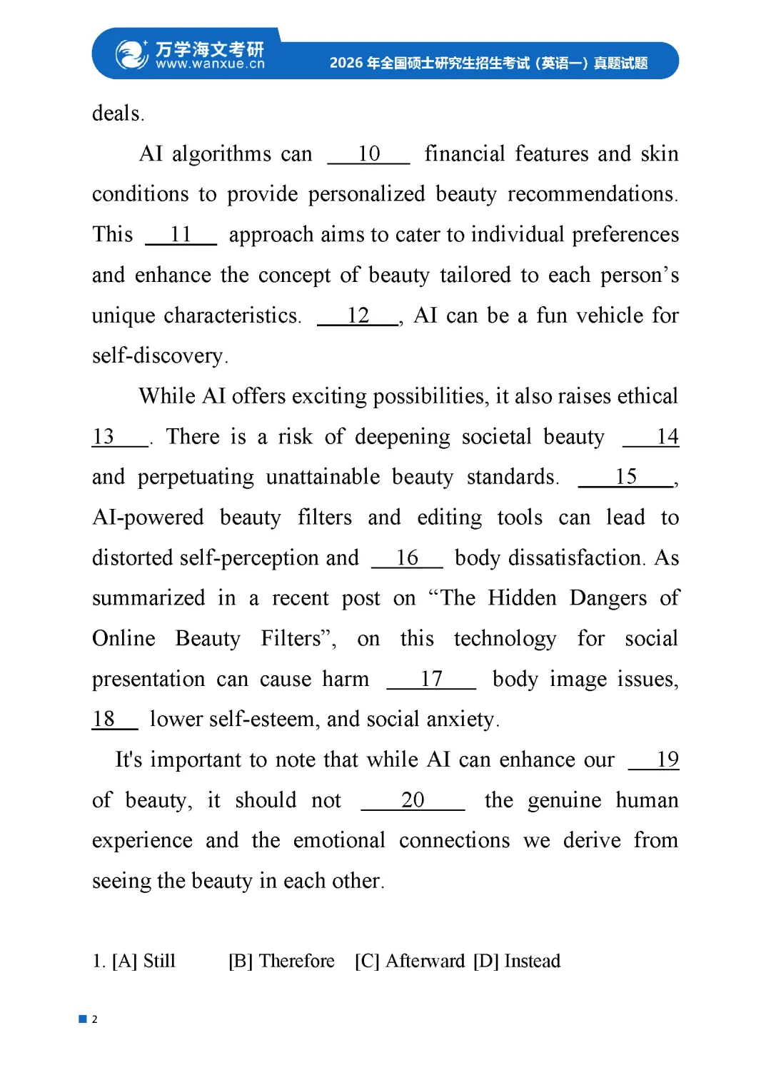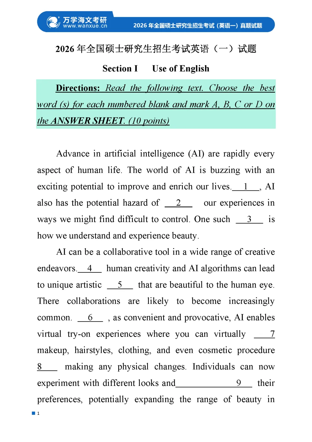 2026考研英语(一)、英语(二)真题及答案解析