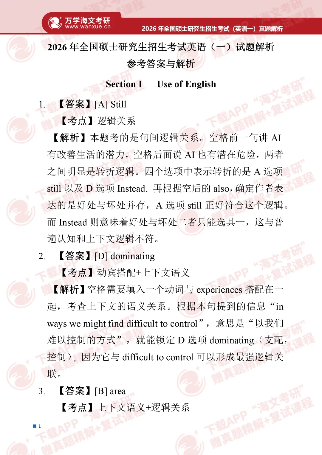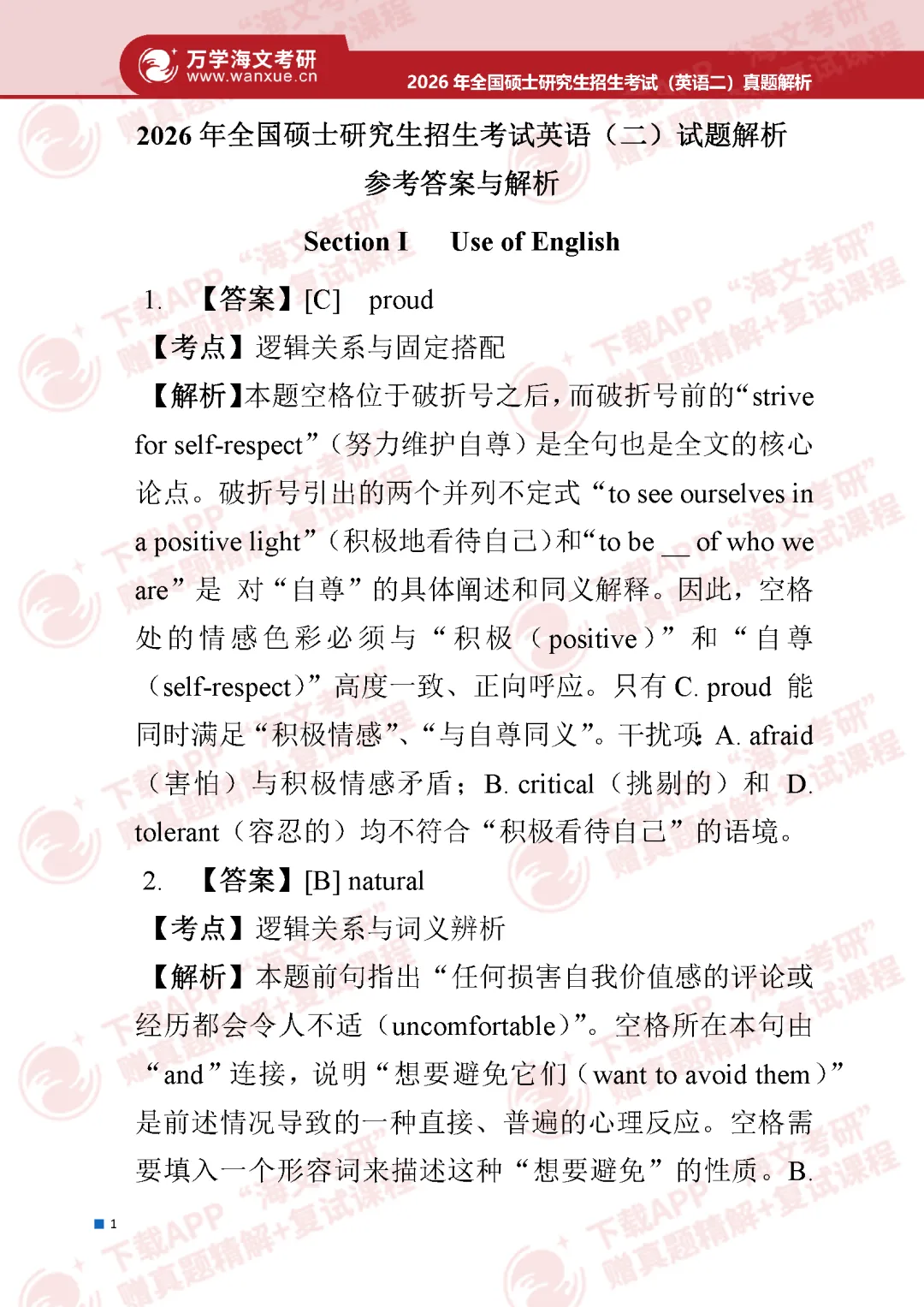 2026考研英语(一)、英语(二)参考答案(完整版)