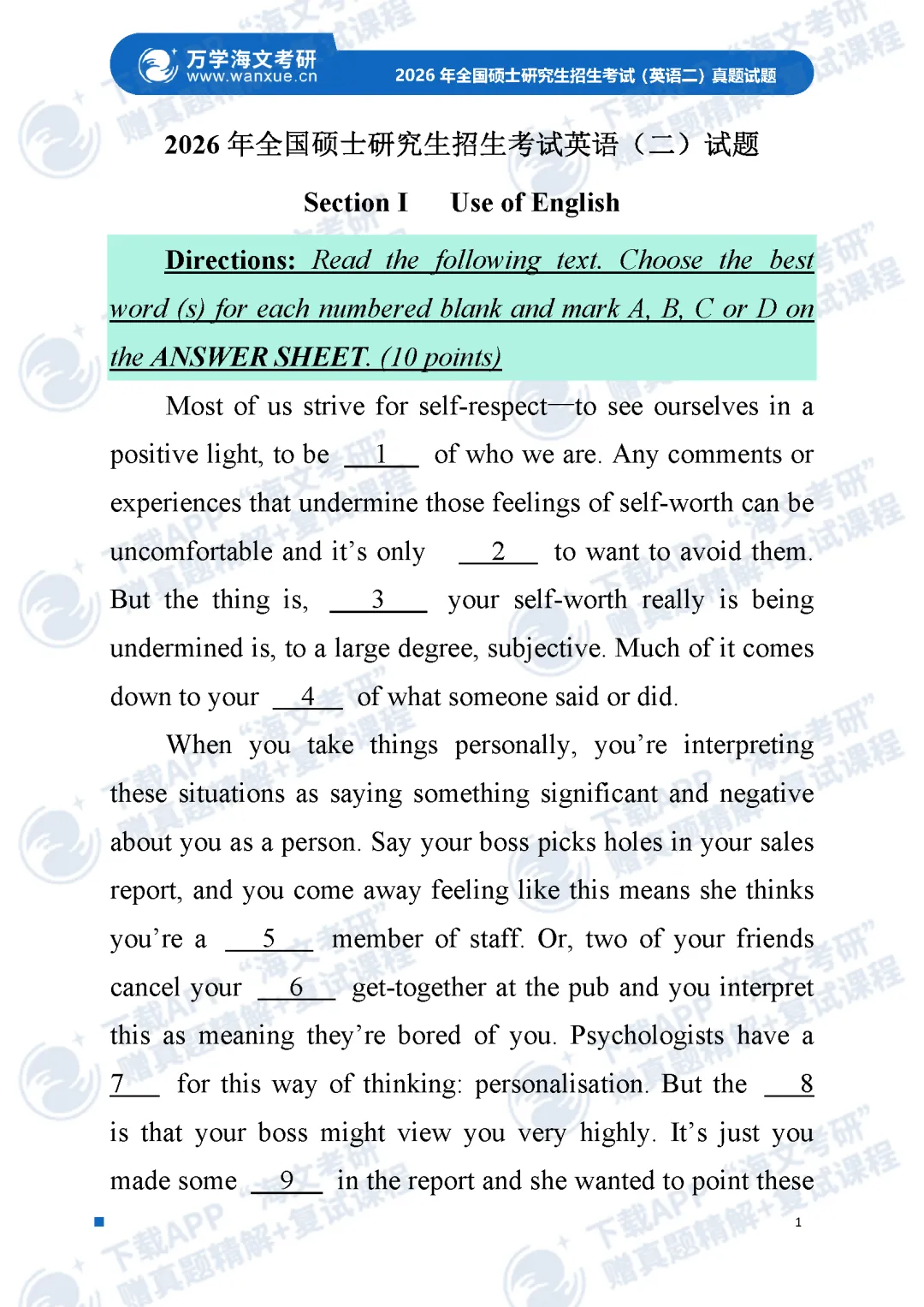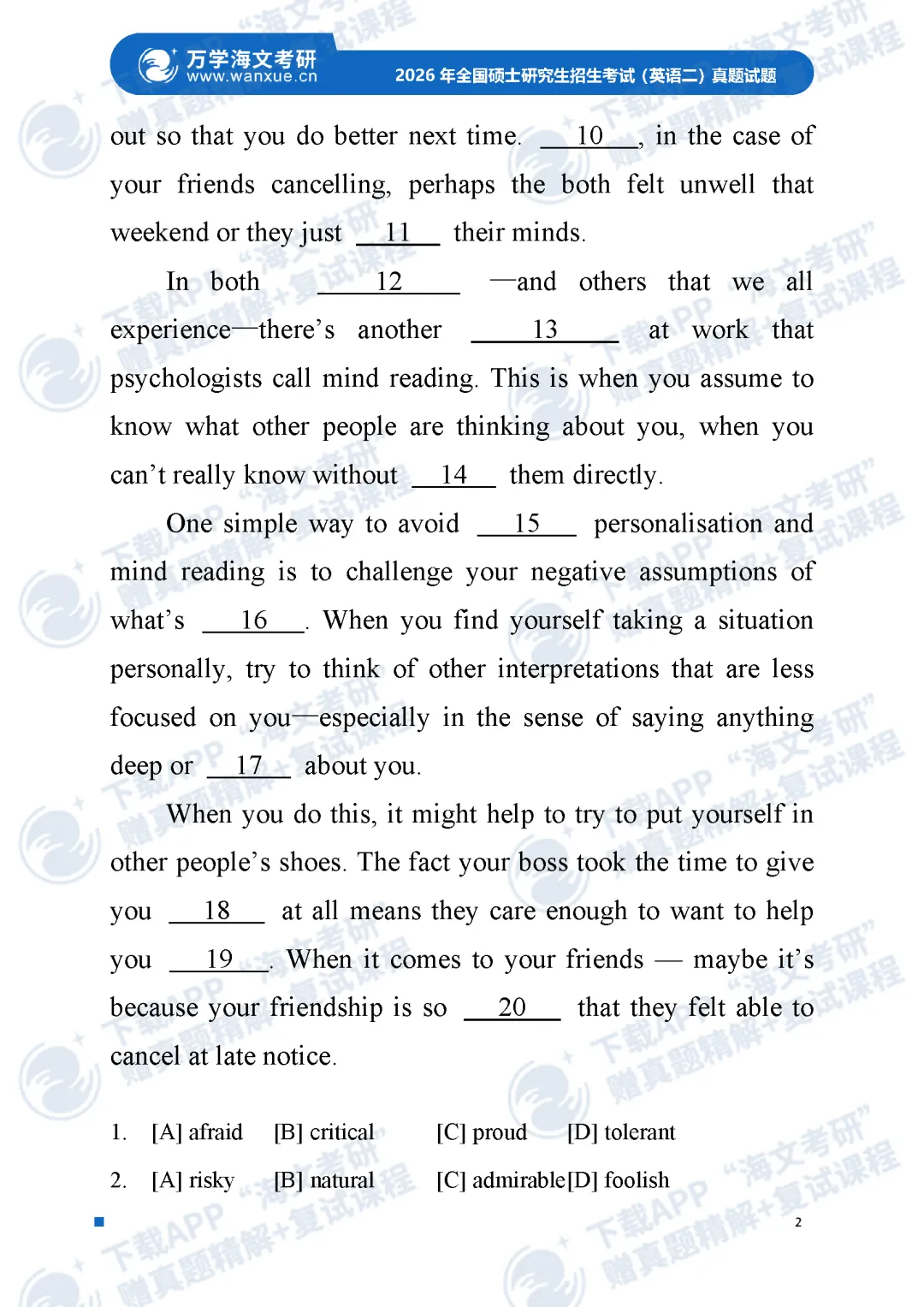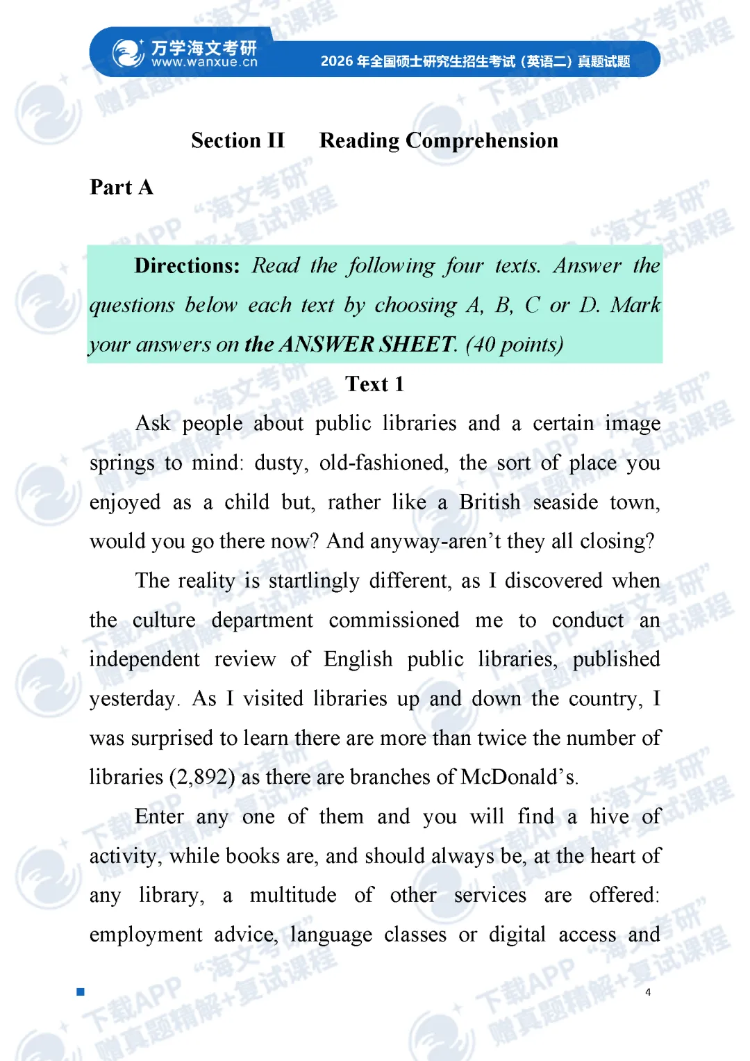 >2026考研英语(一)、英语(二)真题及答案解析