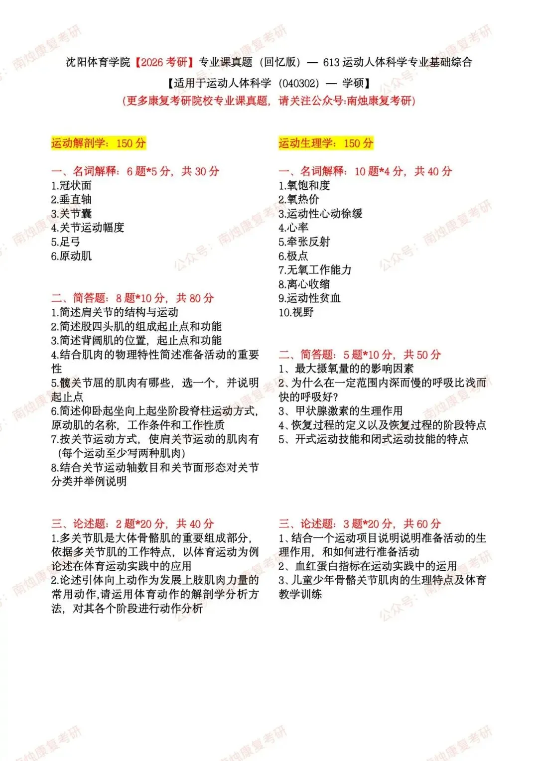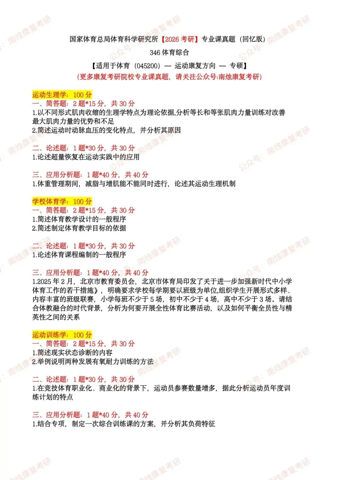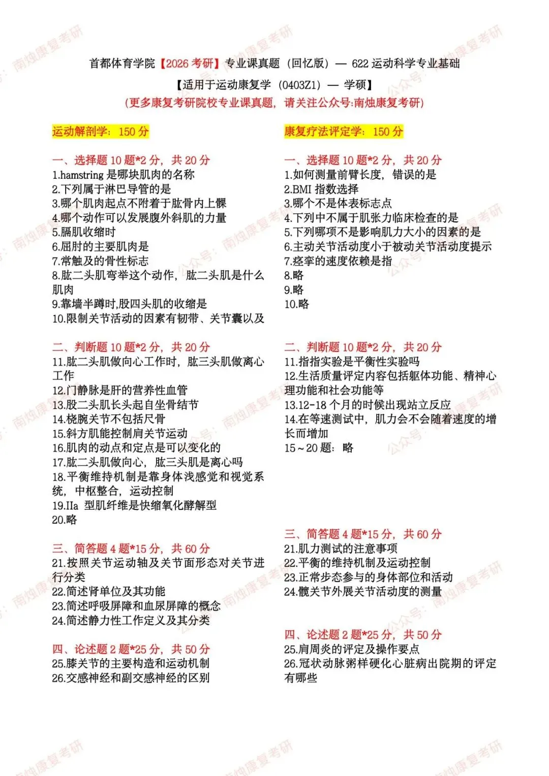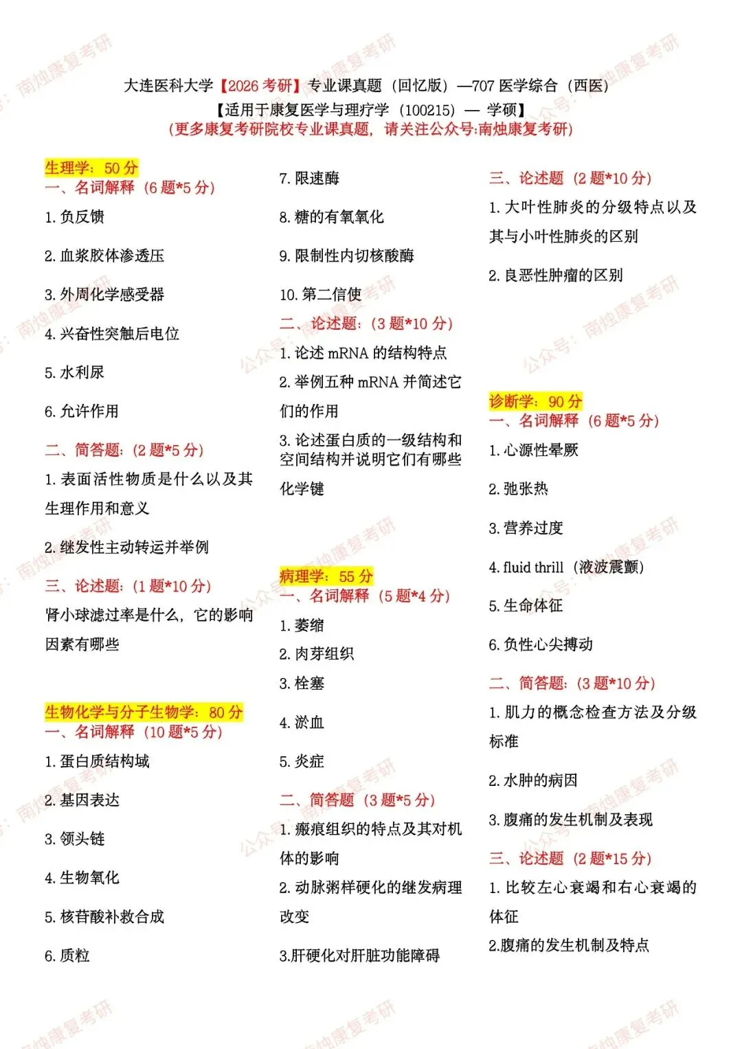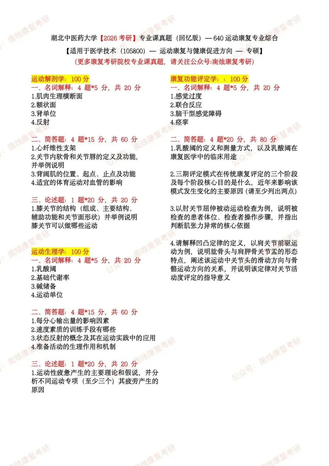 【康复考研各专业】