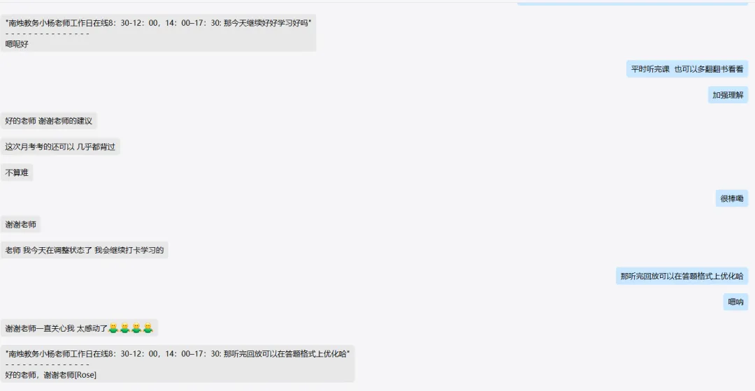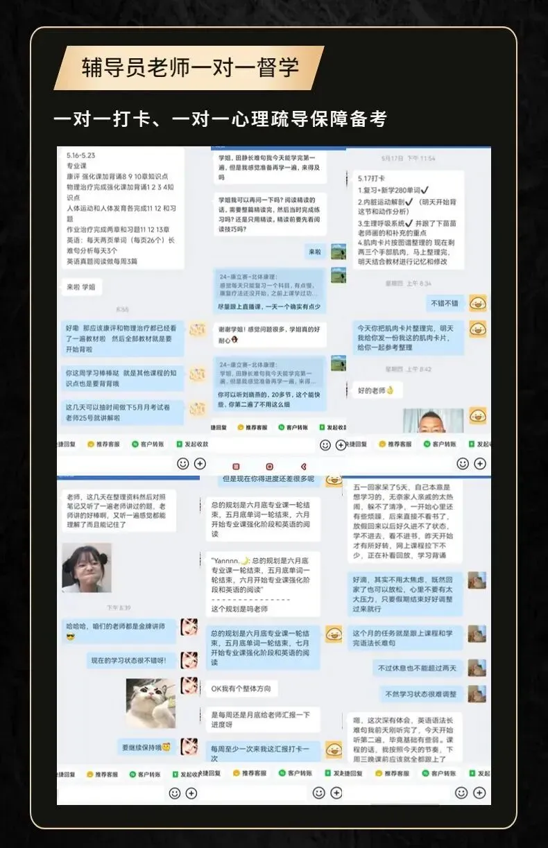 从基础阶段开始班主任老师(直系学长学姐)针对院校划重点复习,通过月考、阶段测试、模拟考试等多方面检验学习情况,辅导员老师会针对情况给你做复习规划还会根据你的测试情况来调整复习方向。