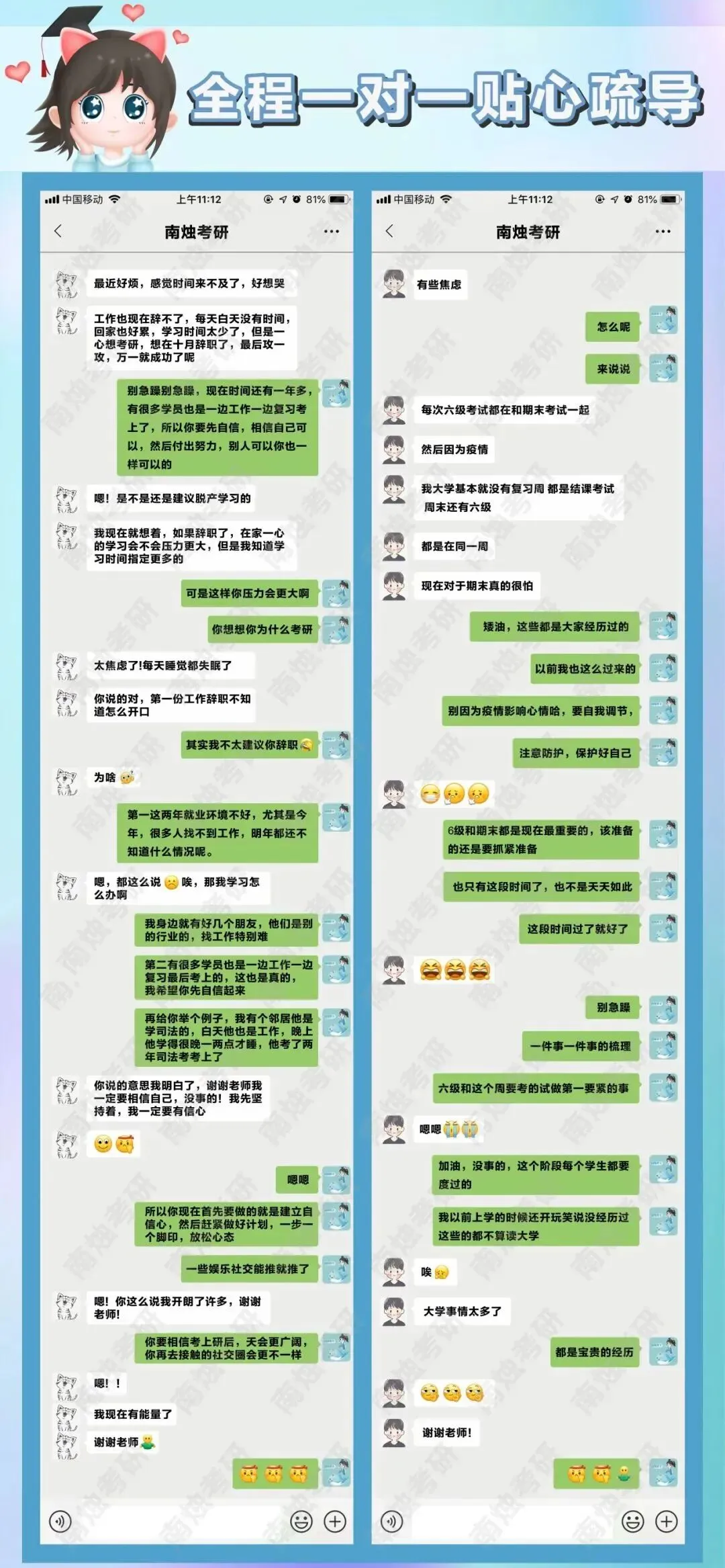 贴心服务可做复习规划,一对一心里疏导保障备考!