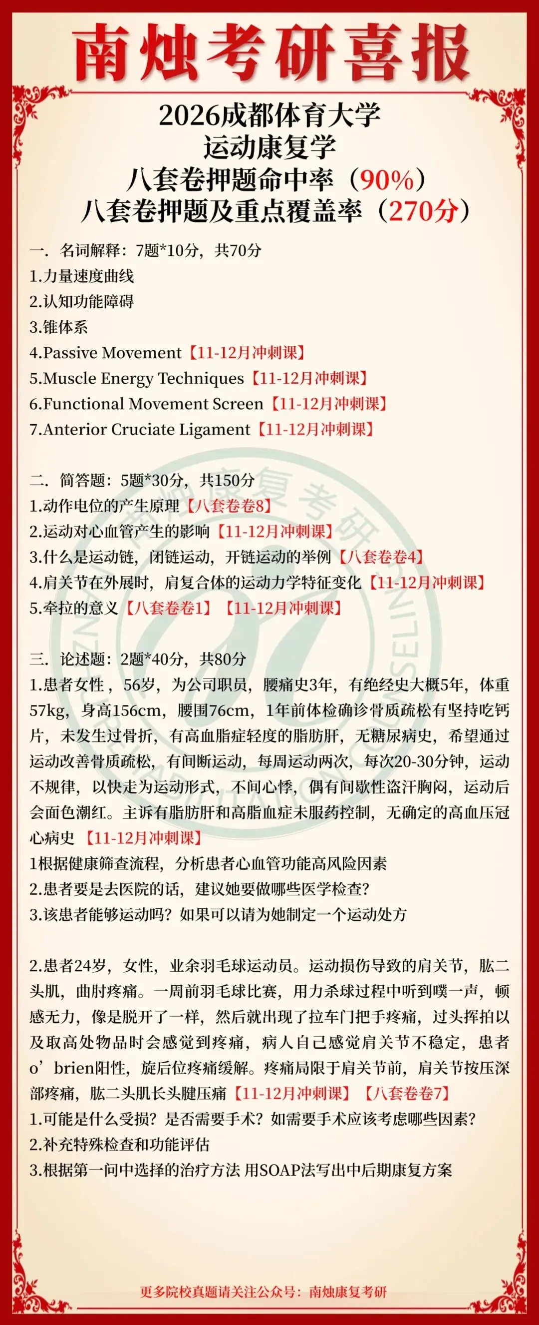 小编也在此祝愿各位康复考研考生能着眼于当下,脚踏实地,全力以赴。当春暖花开日,便是金榜题名时,此战定能得偿所愿,顺利上岸,加油!