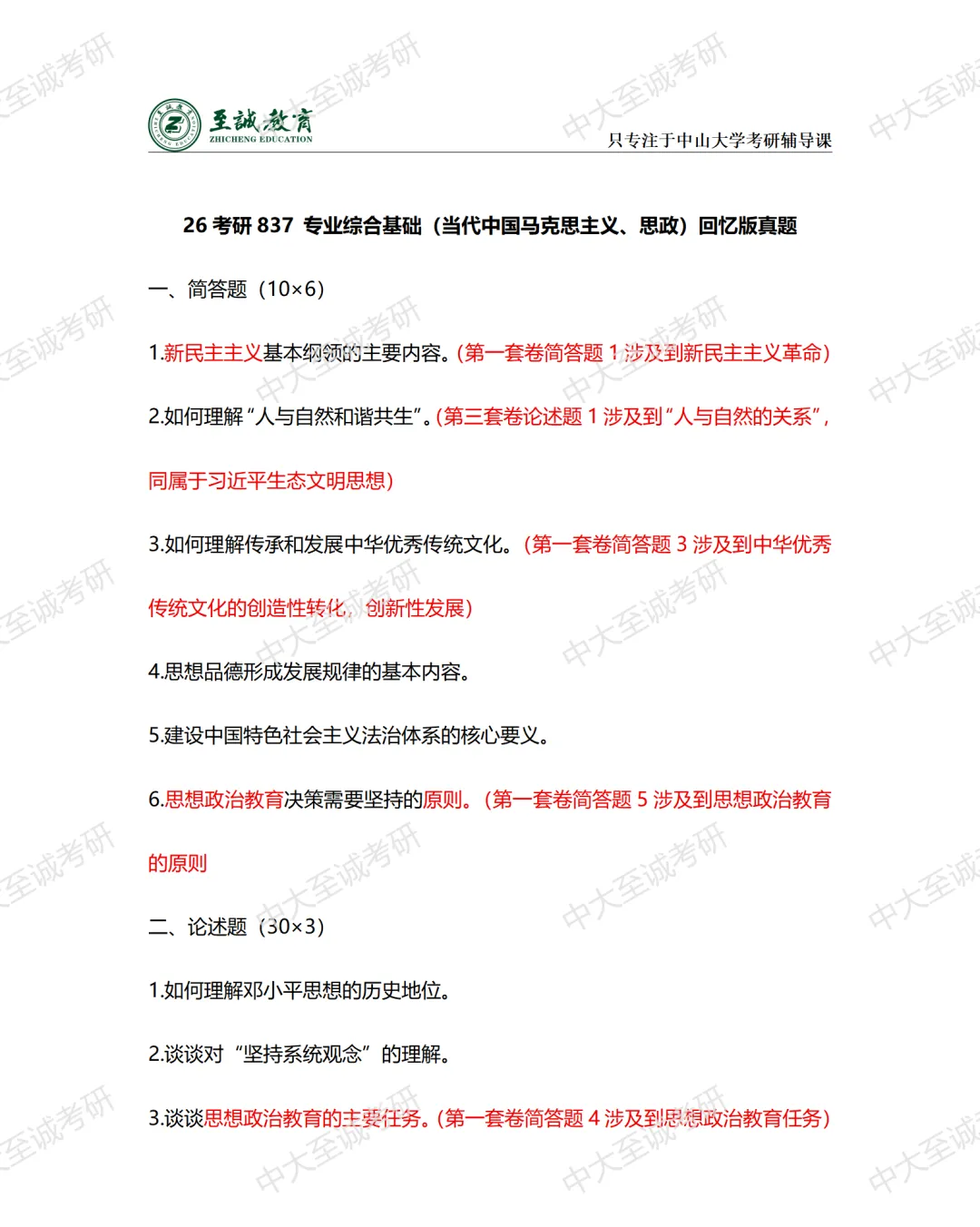 2026考研初试已经结束,要特别感谢每一位参与真题回忆活动的准学长学姐们!小酥已将大家给的内容汇编整理成《2026中山大学各专业考研初试回忆版真题》,希望能为正在备战或未来有志于报考中大的你,提供最真实的参考。如下: