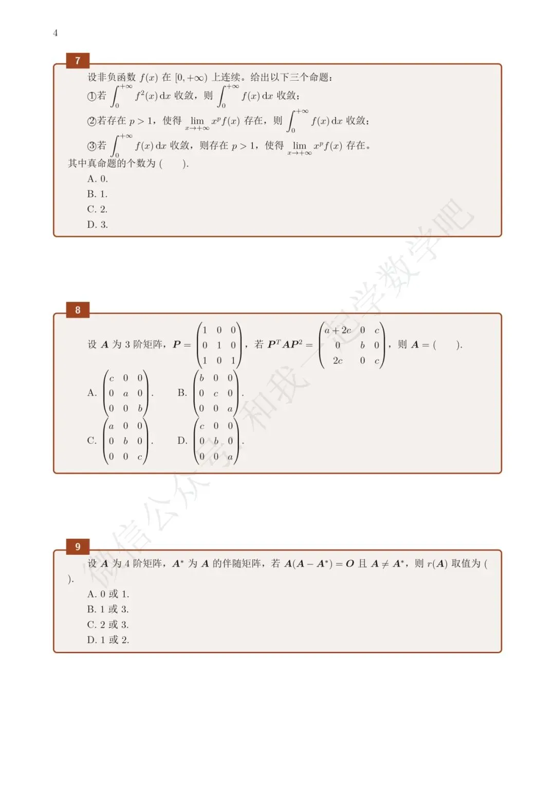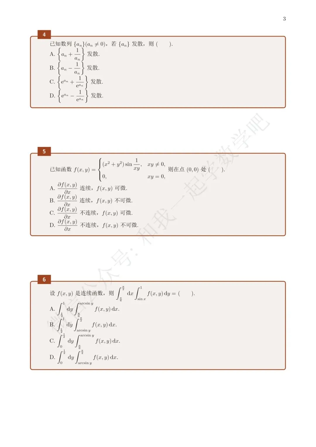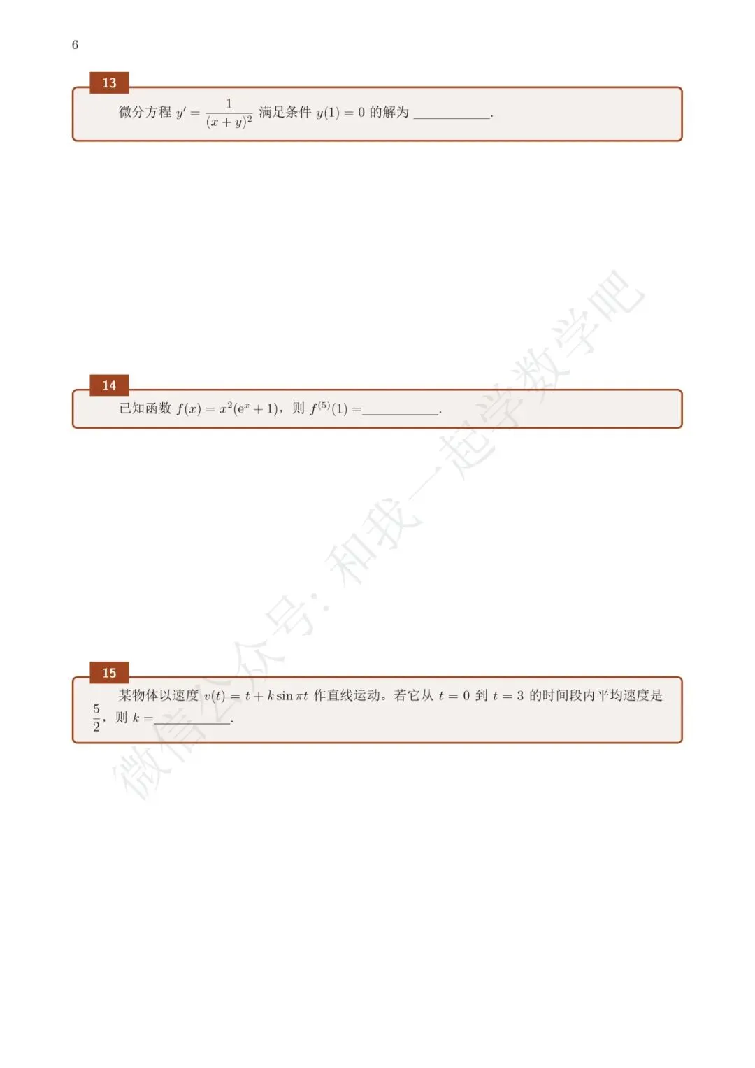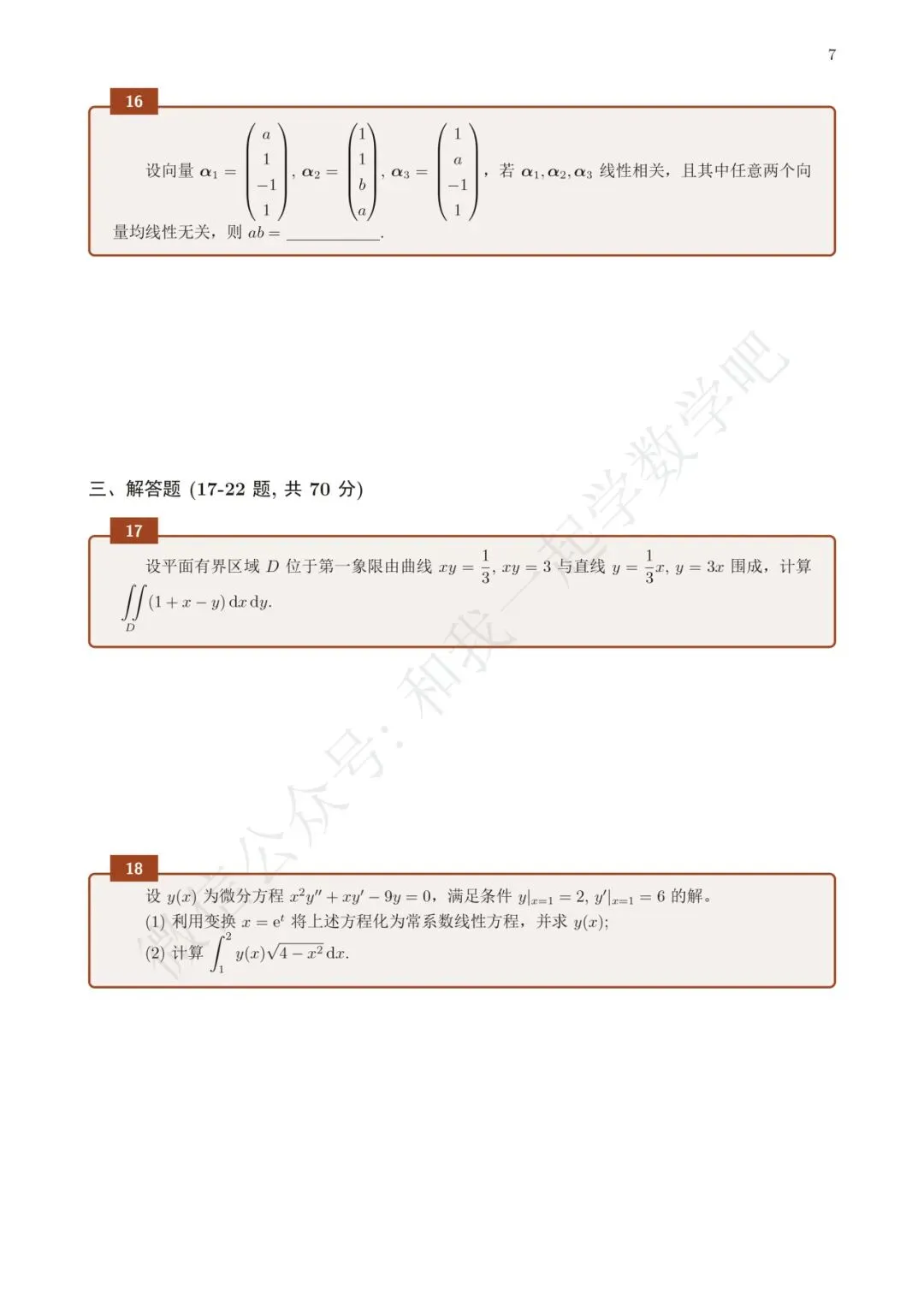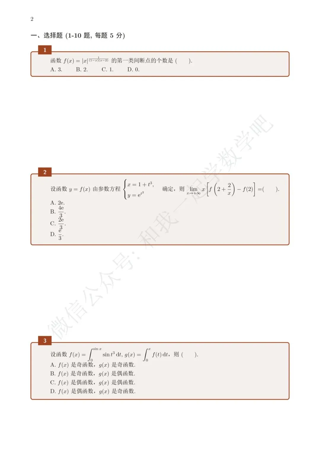 为了方便各位小伙伴们刷题,我重新排版了24年数二的真题,在每道题下面都增加了空白,方便大家写答案,记录相关知识点。