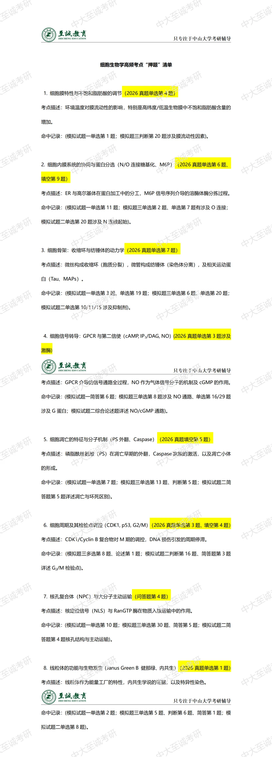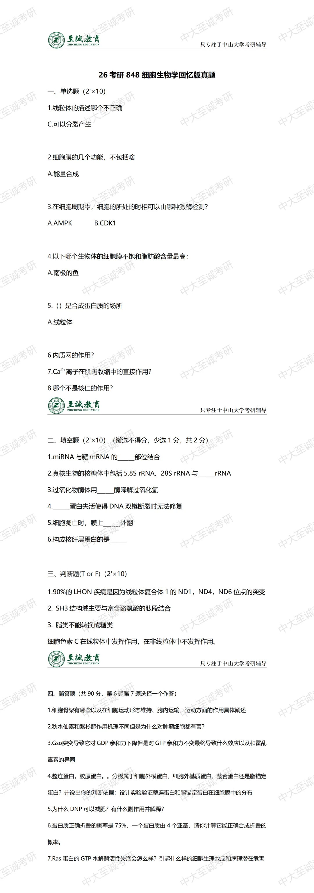 真题 / 848 细胞生物学