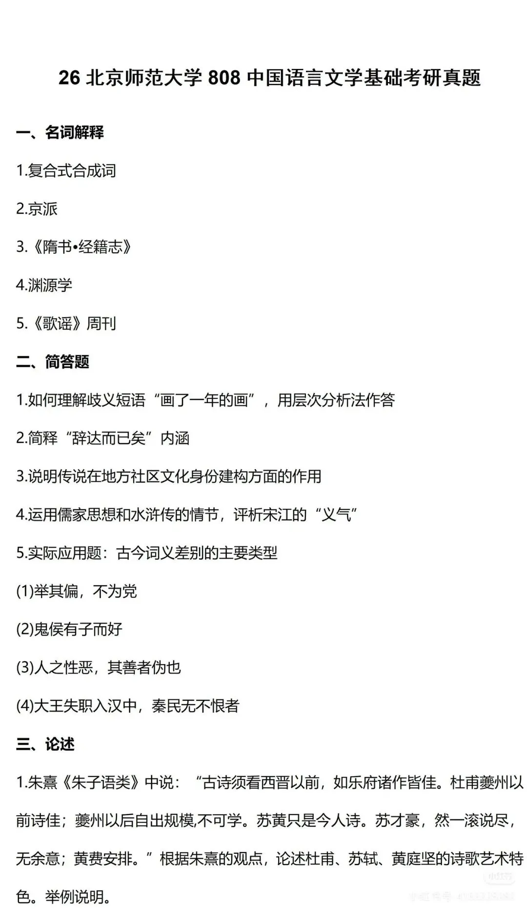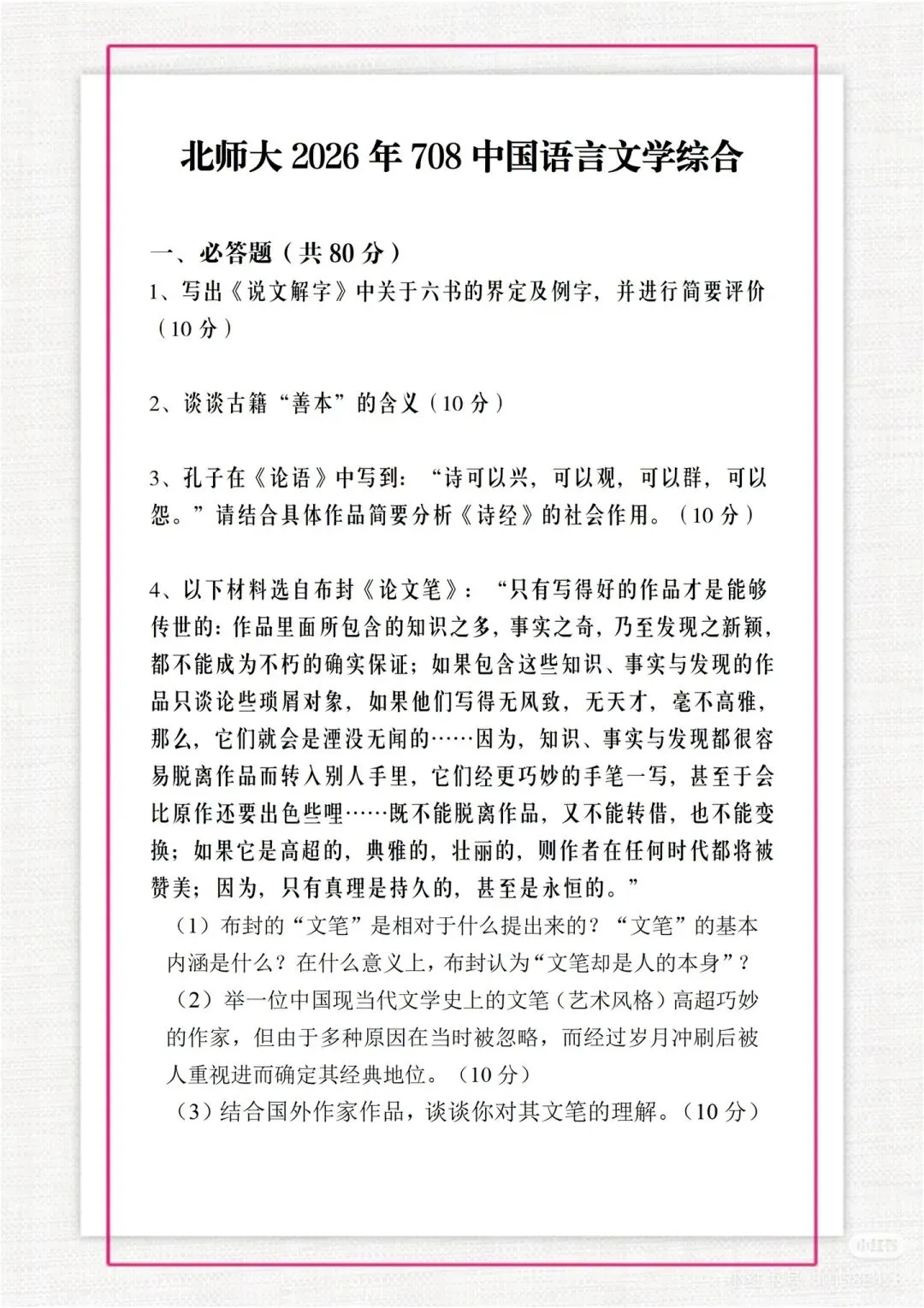 接下来我根据出题风格和题目难度,对26年北京师范大学文学考研做简要分析,并给出27年的备考策略~