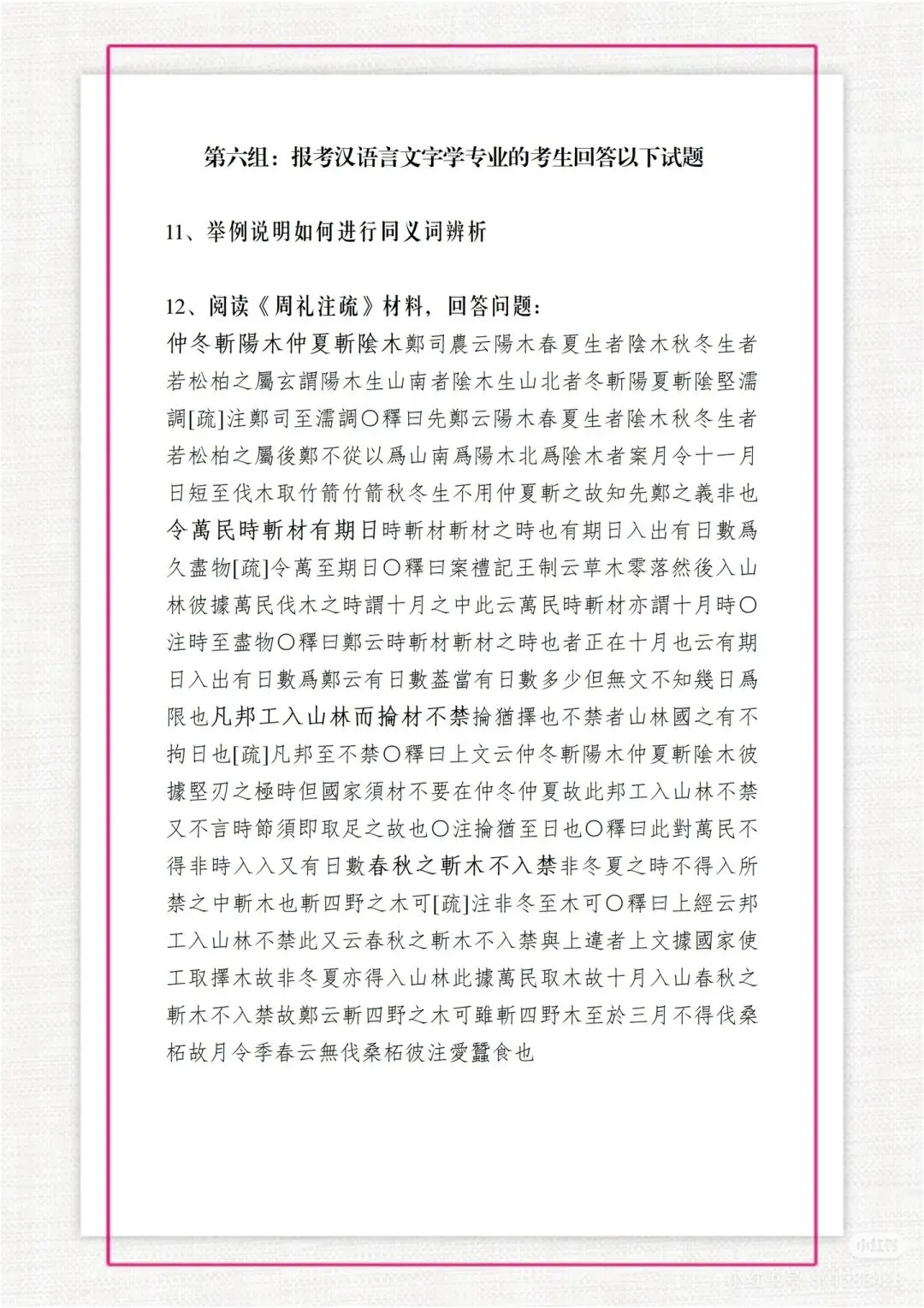 2026年708中国语言文学综合的必做题,由四道简答题和一道含三小问的材料题组成,所考均为各领域核心基础知识点。第一题围绕《说文解字》展开,作答需紧扣“四体二用”等核心要点;第二题考查古籍“善本”定义,可结合张之洞《翰轩语》中的相关论述作答,是版本学的高频考点;第三题从“兴观群怨”理论切入,要求分析《诗经》的社会功能,需融合《诗经》文学史知识与古代文论相关内容展开阐述;第五题论述语言的组合关系与聚合关系,属于语言学高频基础考点,作答需力求全面完整,避免基础失分。