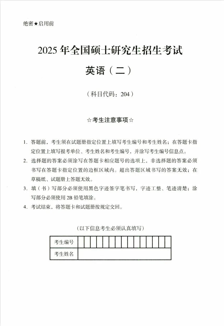 2026 年全国硕士研究生招生考试定于 2025 年 12 月 20 日至 22 日举行,倒计时34天!为助力广大考生高效备考,我们精心整理了 1980 年至 2025 年的考研英语二真题试卷及详细答案解析, PDF 电子版,可下载与打印。通过夸克网盘分享的文件:「英语二真题及答案(1980-2025年)」链接:https://pan.quark.cn/s/d7c863072d00