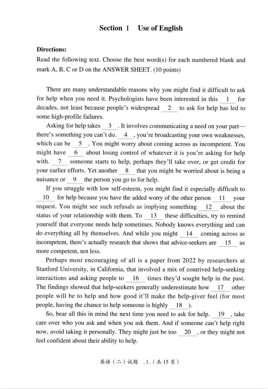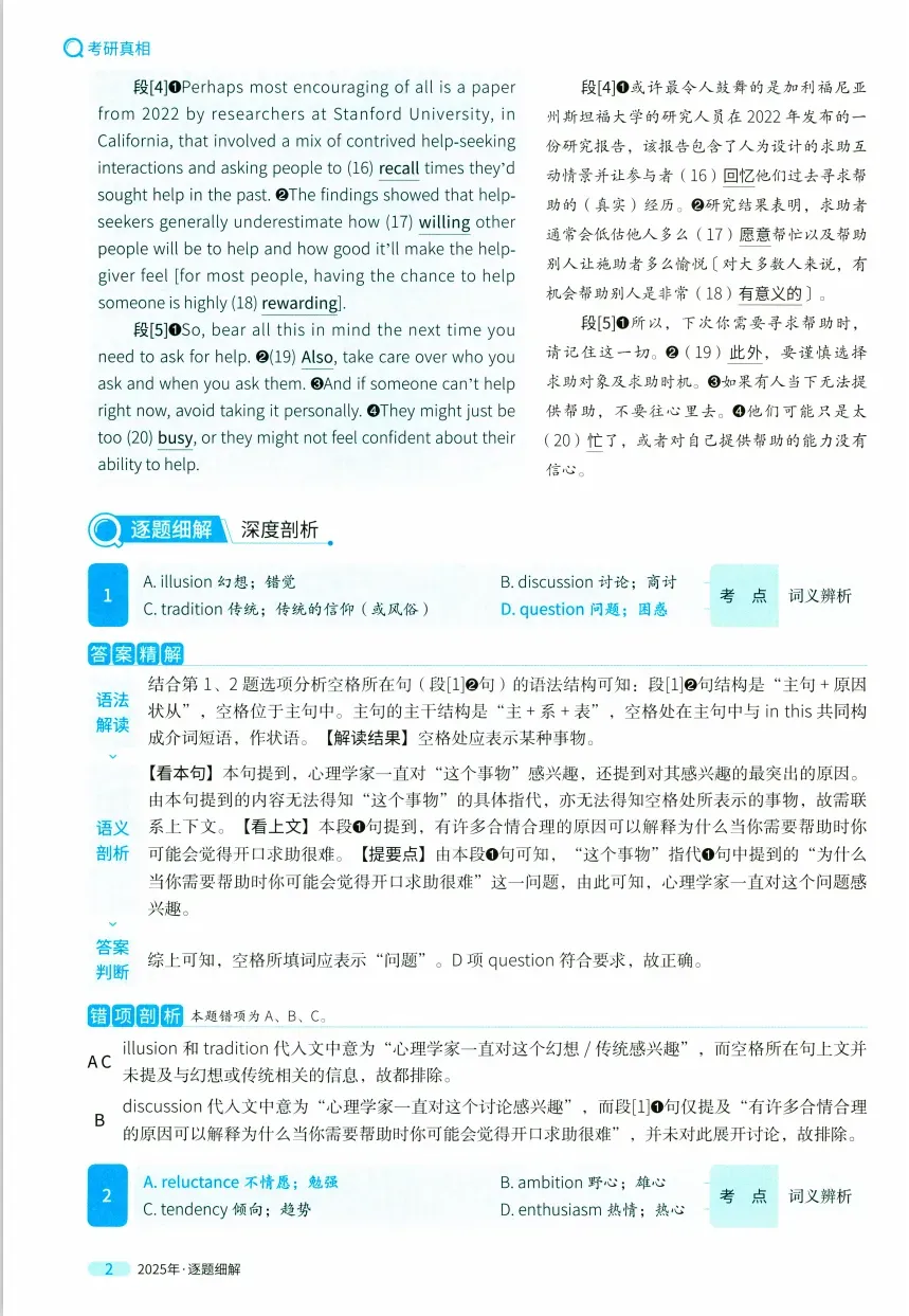 完形填空:一刷15–20分钟。做完之后对照翻译和答案,标记不认识的单词,理解每个空正确选项的逻辑。