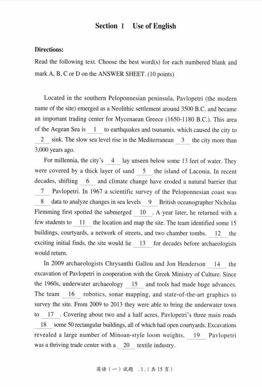 完形填空:一刷15–20分钟。做完之后对照翻译和答案,标记不认识的单词,理解每个空正确选项的逻辑。完形一个空0.5分,分值10分,还是四舍五入制(错6个和7个都是扣三分),所以花太多时间性价比不高。
