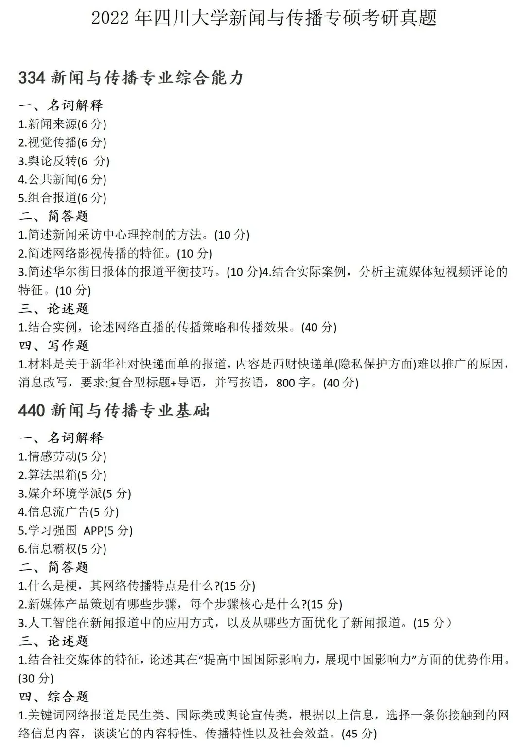 历年中国传媒大学新闻与传播专硕考研真题答案【334新闻与传播综合能力+440新闻与传播专业基础】