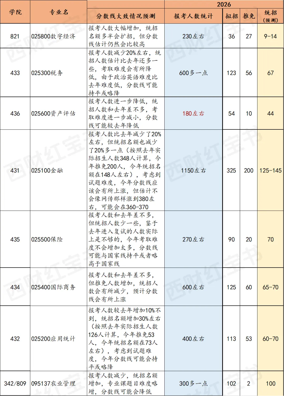 独家 | 2026西财考研各专业报考人数及分数线预测分析(一)