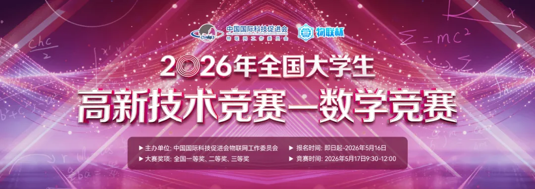 由国家一级社团分会-中国国际科技促进会物联网工作委员会主办的“2026年全国大学生高新技术竞赛——数学竞赛”以考察学生数学能力为核心内容,现报名正在进行中,欢迎大家扫码报名,和数学爱好者展开数学方面的相关交流相互促进相互学习!