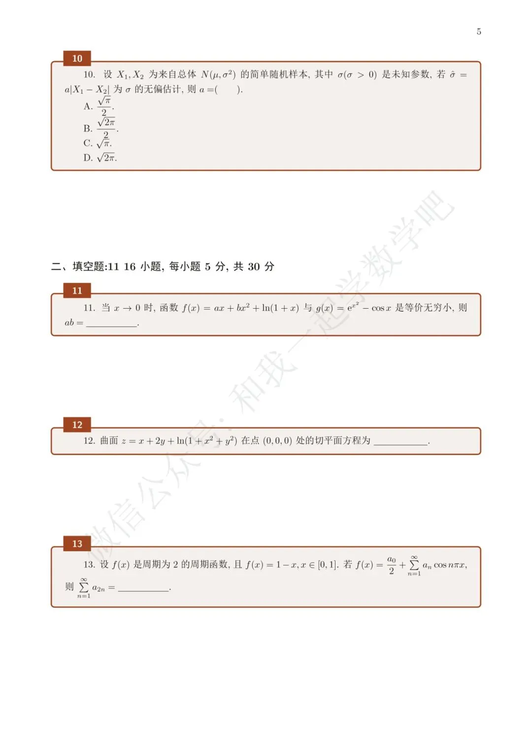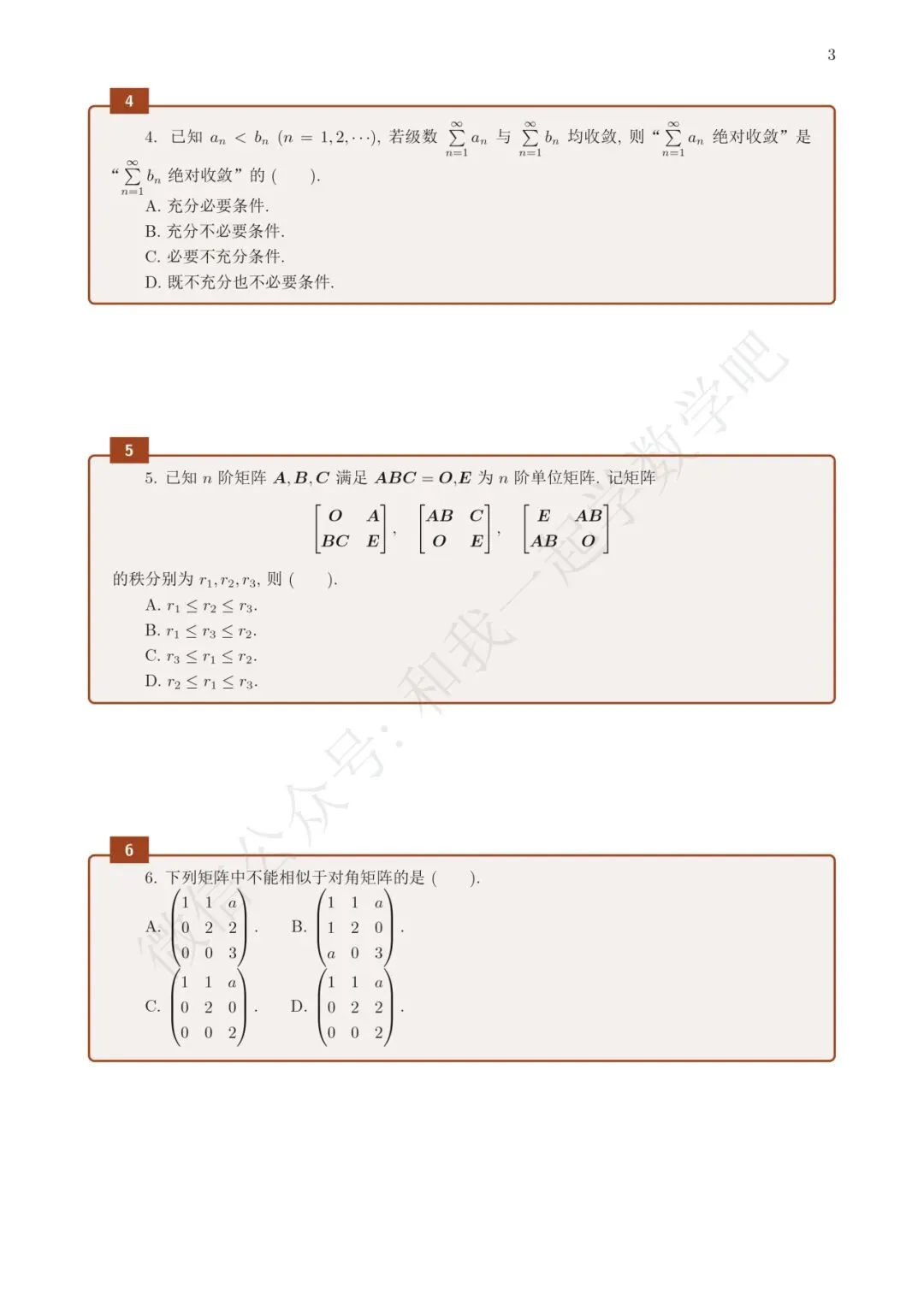 为了方便各位小伙伴们刷题,我重新排版了23年数一的真题,在每道题下面都增加了空白,方便大家写答案,记录相关知识点。