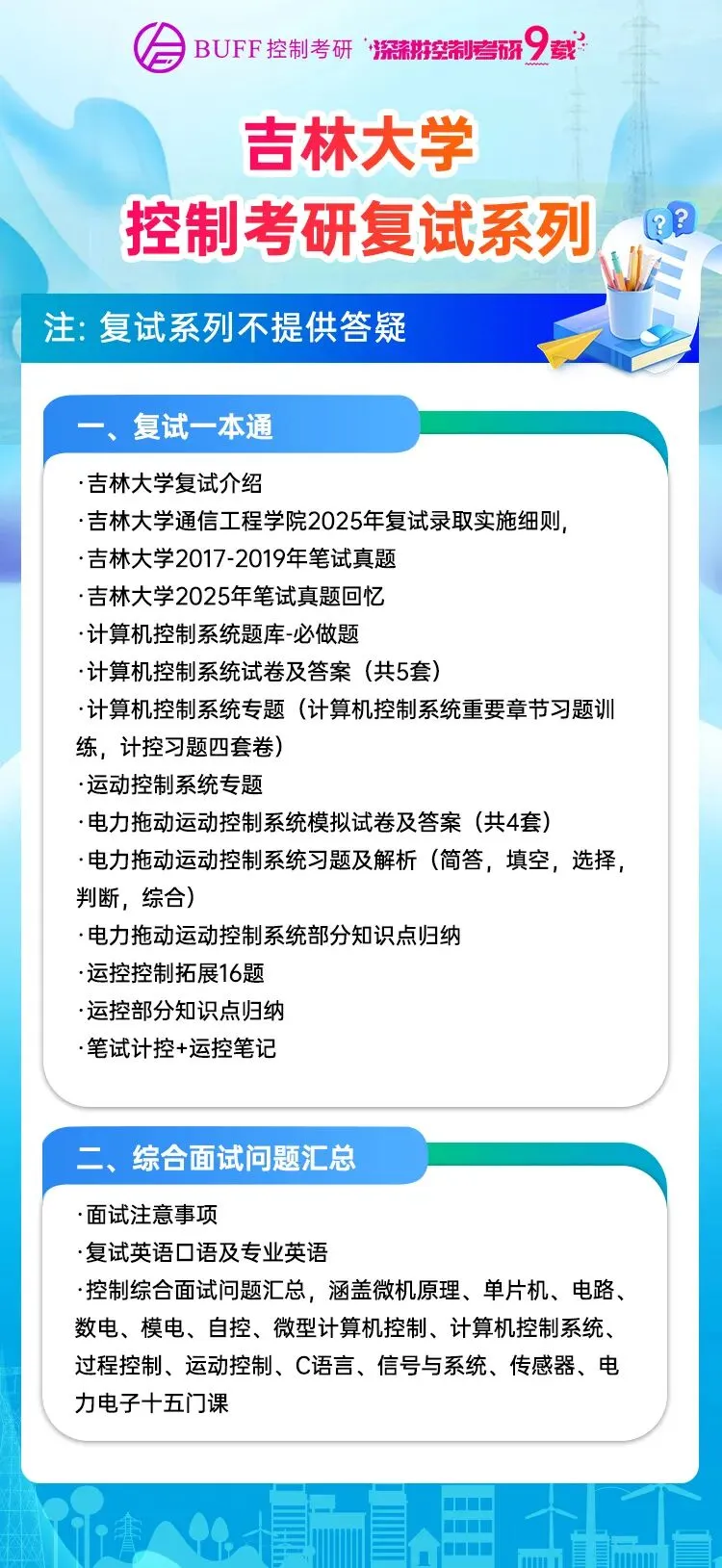冲刺复试,高分上岸!BUFF控制考研,助你精准备考吉林大学控制专业,覆盖历年真题,模拟题,面试全攻略,一战搞定复试难题!BUFF吉林大学控制考研复试系列——复试备考全程护航!