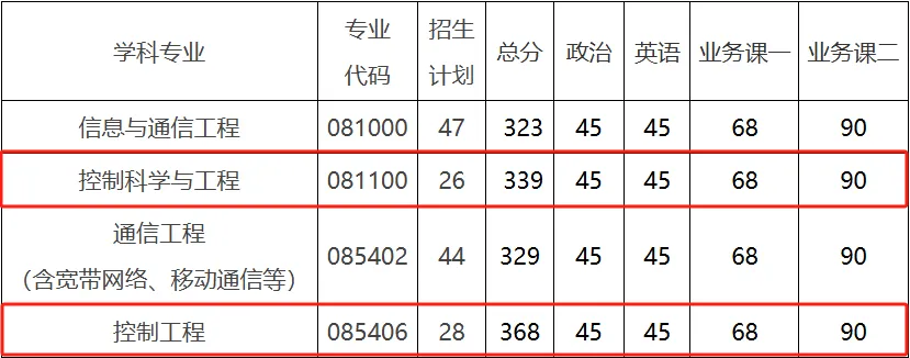 控制学硕:339(45/45/68/90),与24年相比,下降12分!