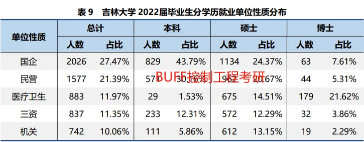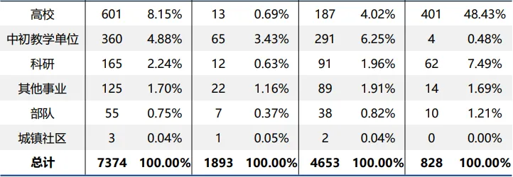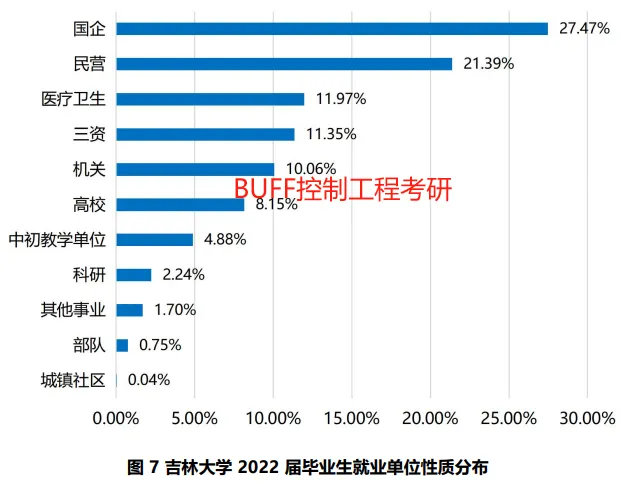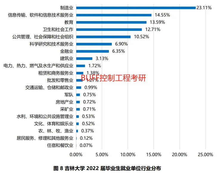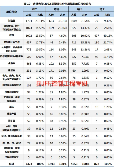 2022年,吉林大学共有7374名毕业生通过协议、合同等形式与用人单位达成签约(不含1183人签约短期科研助理及管理助理)。从签约就业单位性质来看,到各类企业就业的毕业生占比 60.21%;到党政机关和事业单位工作的毕业生占比 39.04%,详见图7和表9在达成签约的毕业生中,74.48%的毕业生集中在制造业,信息传输、软件和信息技术服务业,教育,卫生和社会工作,公共管理、社会保障和社会组织等行业,详见图8和表10。您已有200+好友关注了下方公众号: