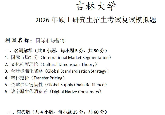 吉林大学国际市场营销考研复试真题模拟含答案