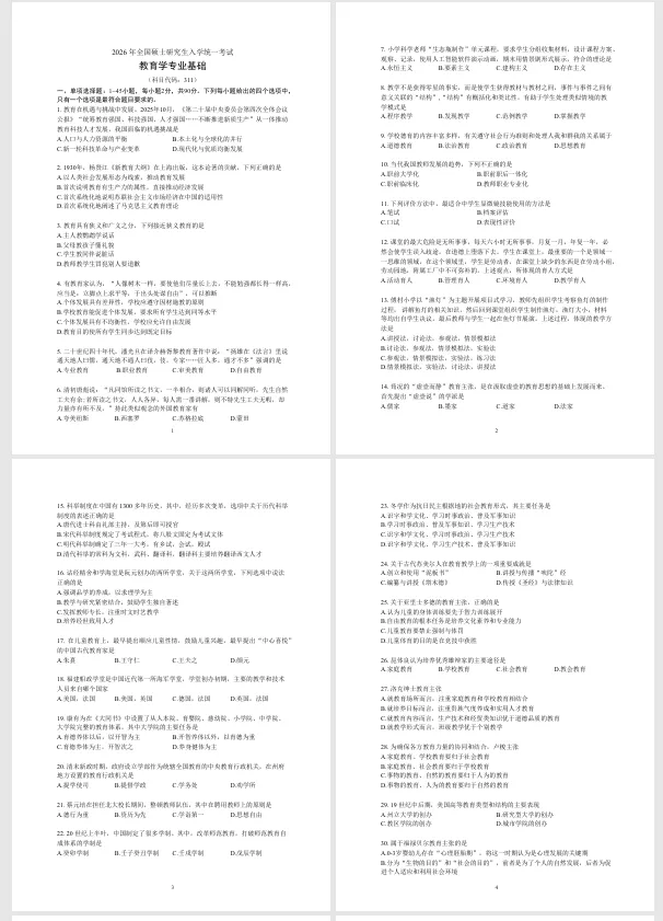 2026年考研真题与答案合集免费下载【政英数公共课+统考专业课】(附历年真题答案合集)