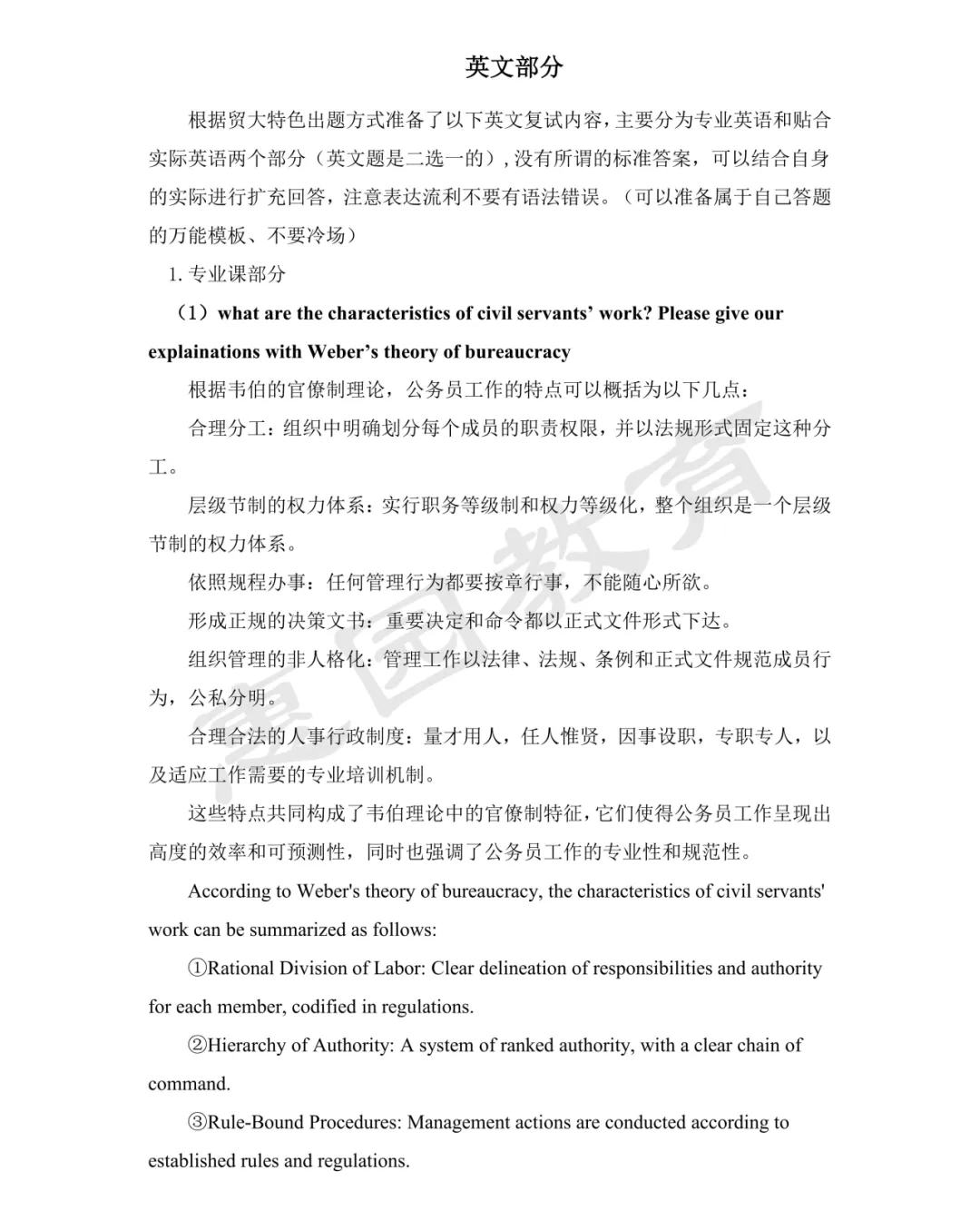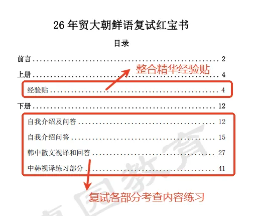 ✅第五板块为本次升级的特色内容——英文复试专项指导,严格参照贸大复试真题回忆版本编写。通过这部分内容的系统练习,你可提前熟悉英文考题的题型设置与考察重点,培养答题手感,考场上从容应对,不再因陌生感而失分。