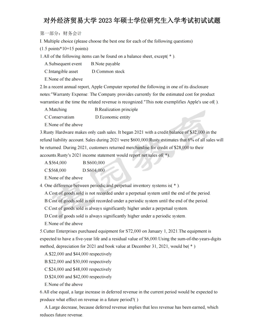 一、财务会计部分知识点二、财务管理部分知识点三、成本与管理会计部分知识点四、审计部分知识点五、面试题目整理汇总六、往年会计学复试回忆真题及相关知识点七、15-23年初试831真题及答案汇总八、历年复试回忆题目✅点击了解:复试红宝书资料详情