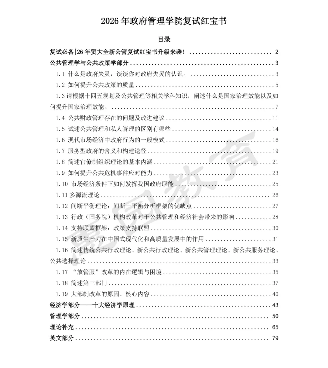 ✅前三板块直击复试核心考察范围,系统覆盖公共管理学、公共政策学、管理学及经济学四大核心领域。我们结合历年考情梳理高频考点,关联最新学科热点,以专题化逻辑重组零散知识,既帮你省去盲目整理的时间,更能助力你构建完整的知识框架,实现对考点的精准把控与深度理解。