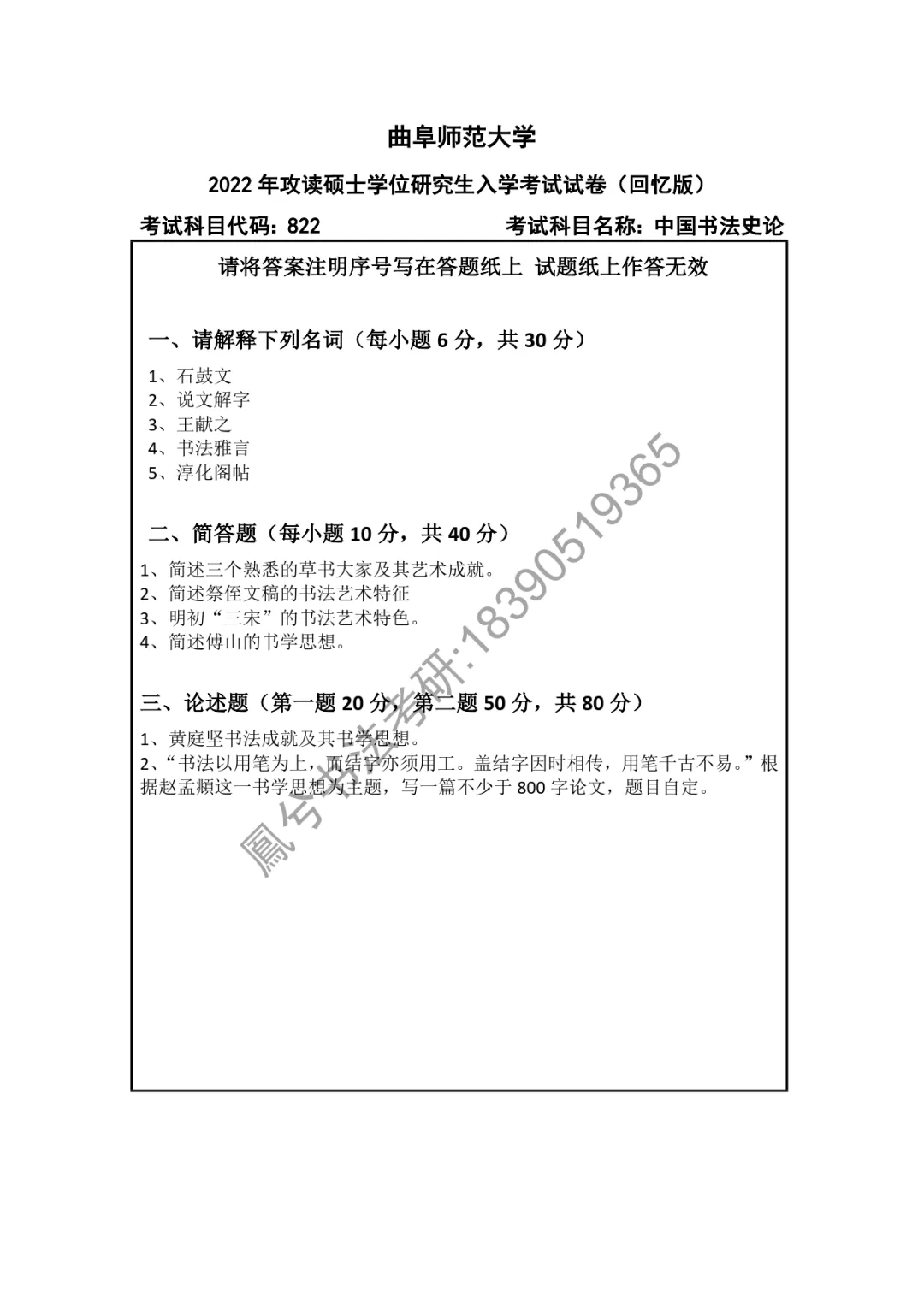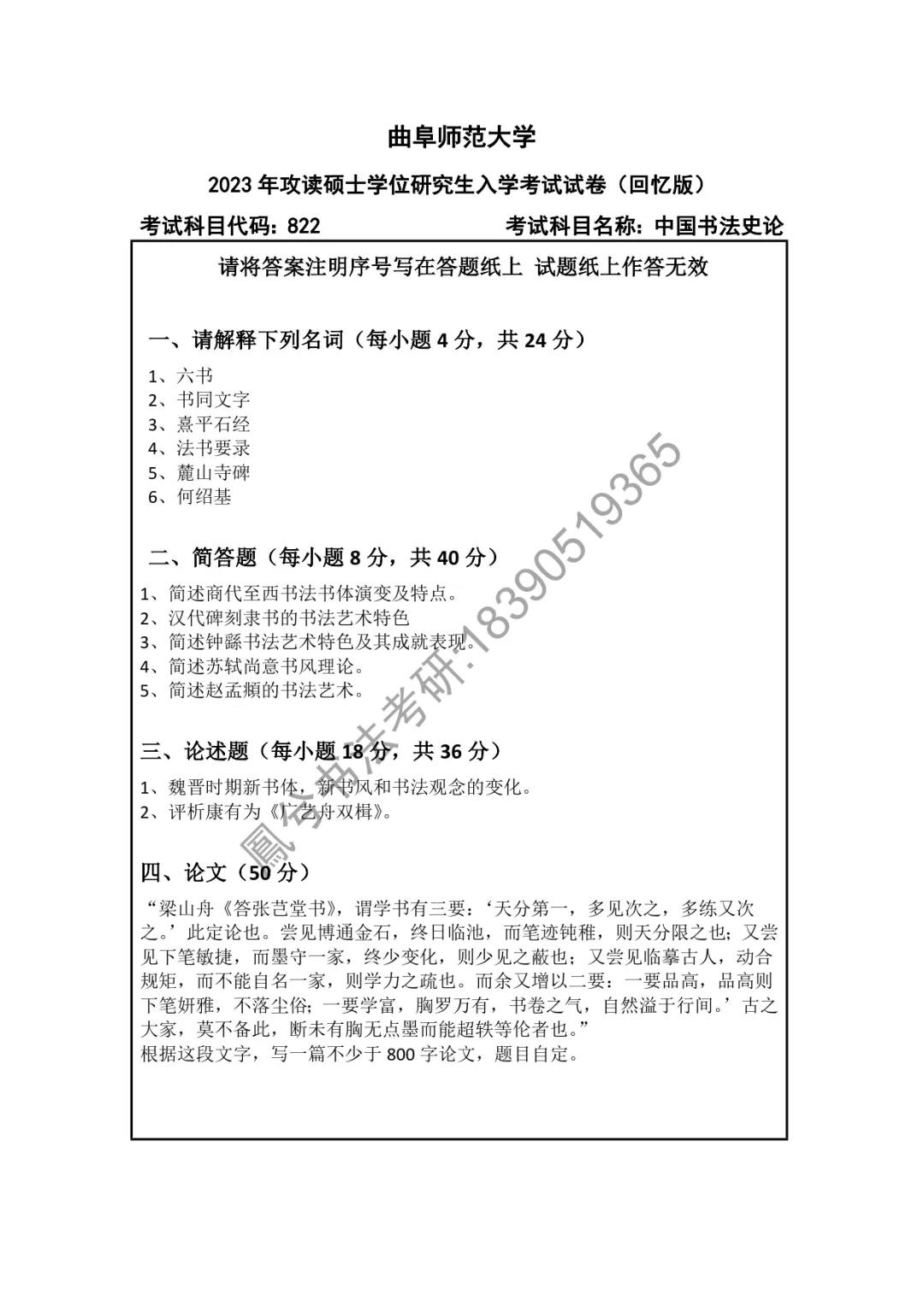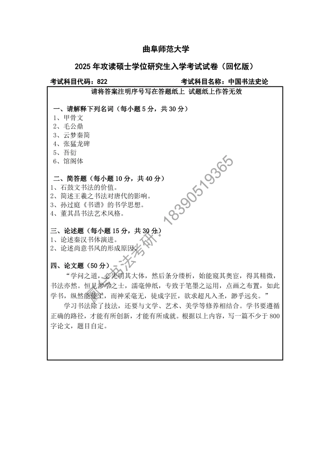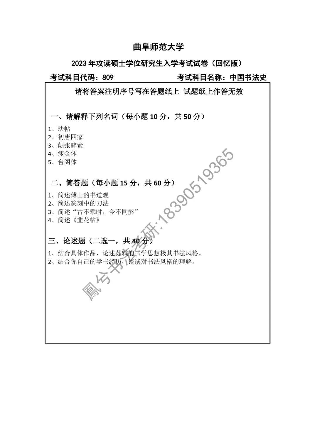 27院校分析 | 曲阜师范大学书法考研招考信息与真题分析