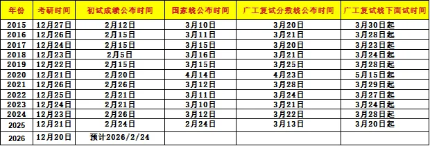 下图给大家整理了近几年国家线和复试线时间: