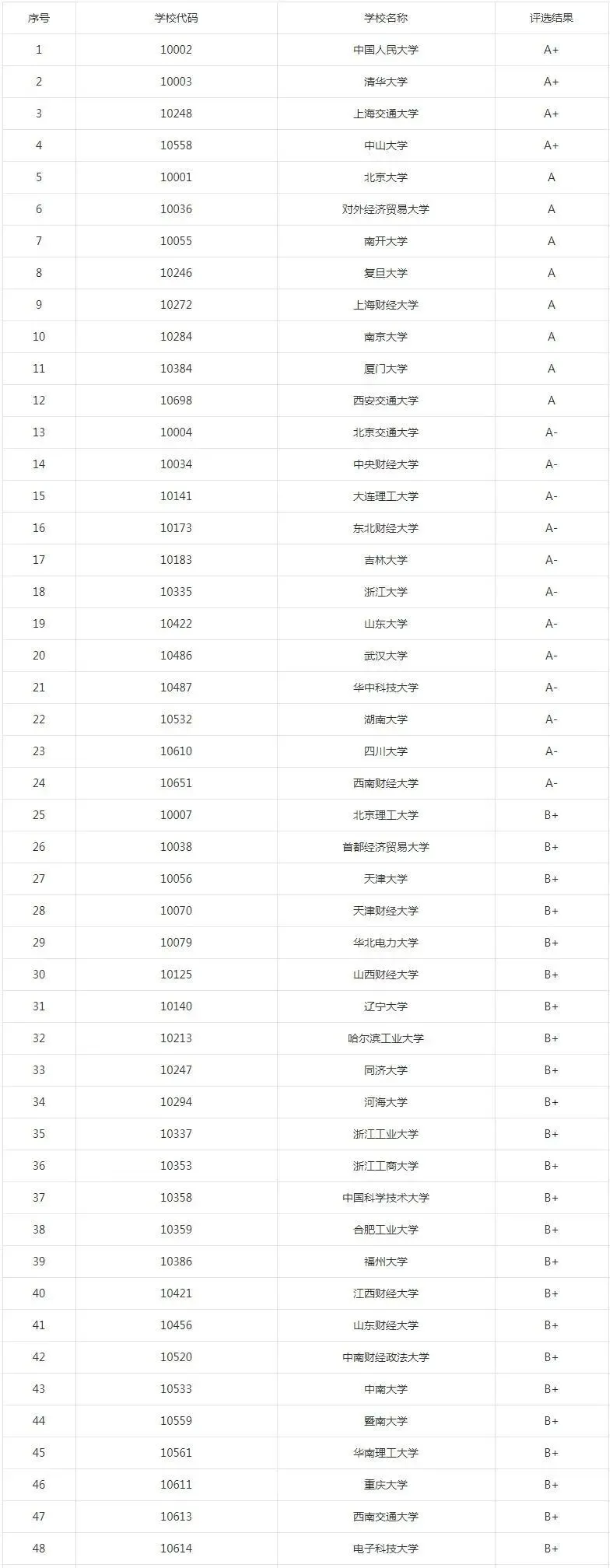 厦门大学、中山大学 、清华大学、中南财经政法大学中央财经大学、西安交通大学、上海财经大学西南财经大学、东北财经大学、中国人民大学对外经济贸易大学、江西财经大学 、暨南大学天津财经大学、吉林大学、四川大学、首都经济贸易大学等。