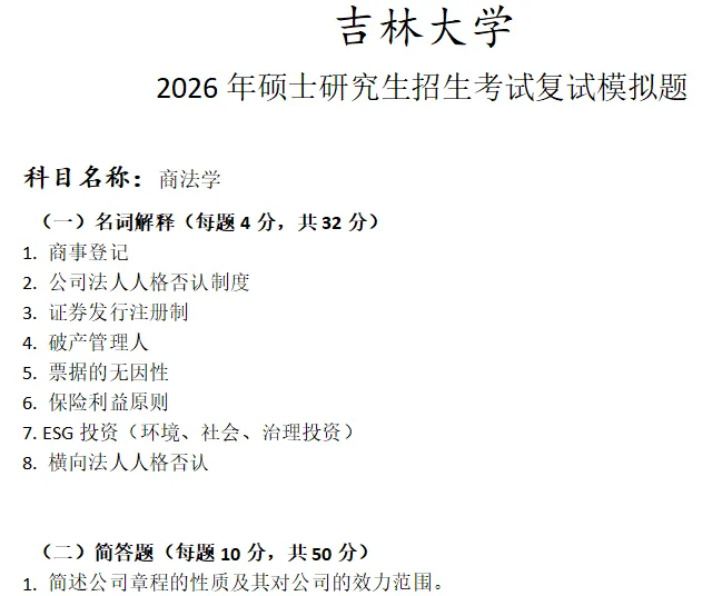 吉林大学商法学考研复试真题模拟含答案