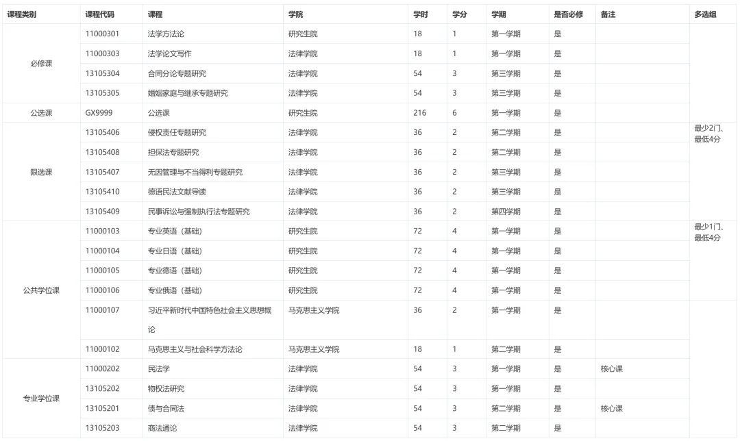 华政考研各专业培养方案之民商法