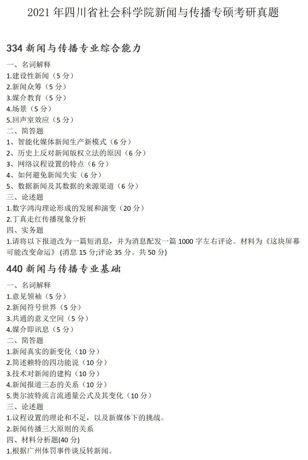 >四川省社会科学院大学新闻与传播考研真题2021
