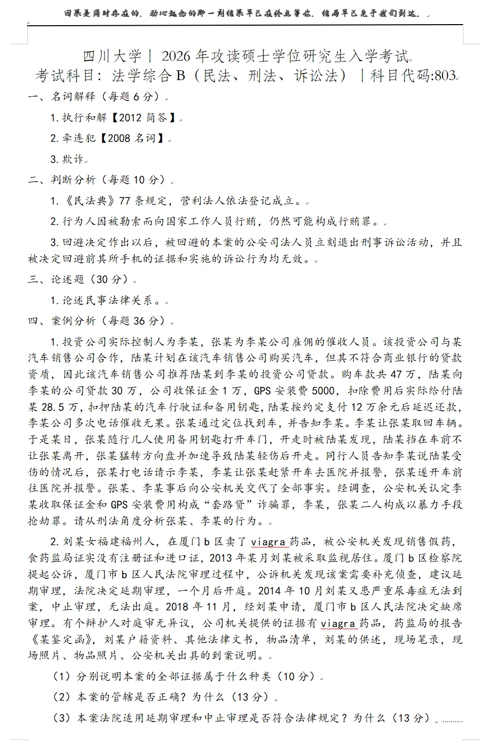 【解析】常规知识点,但是考察较偏,很多年没考民法论述题。