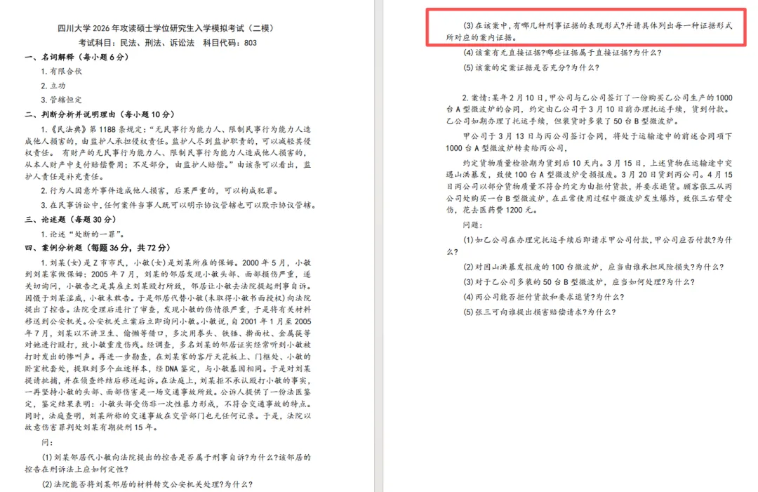 (1)分别说明本案的全部证据属于什么种类(10分)