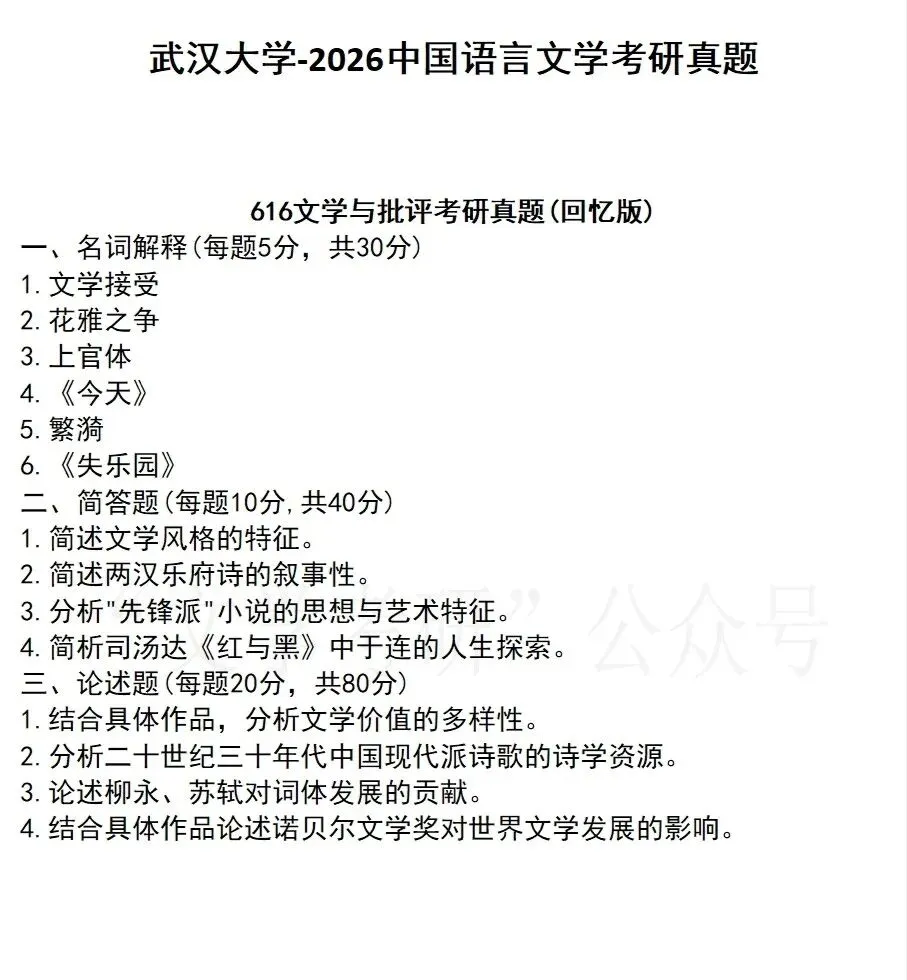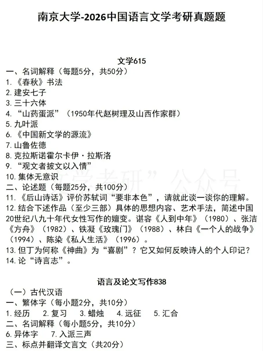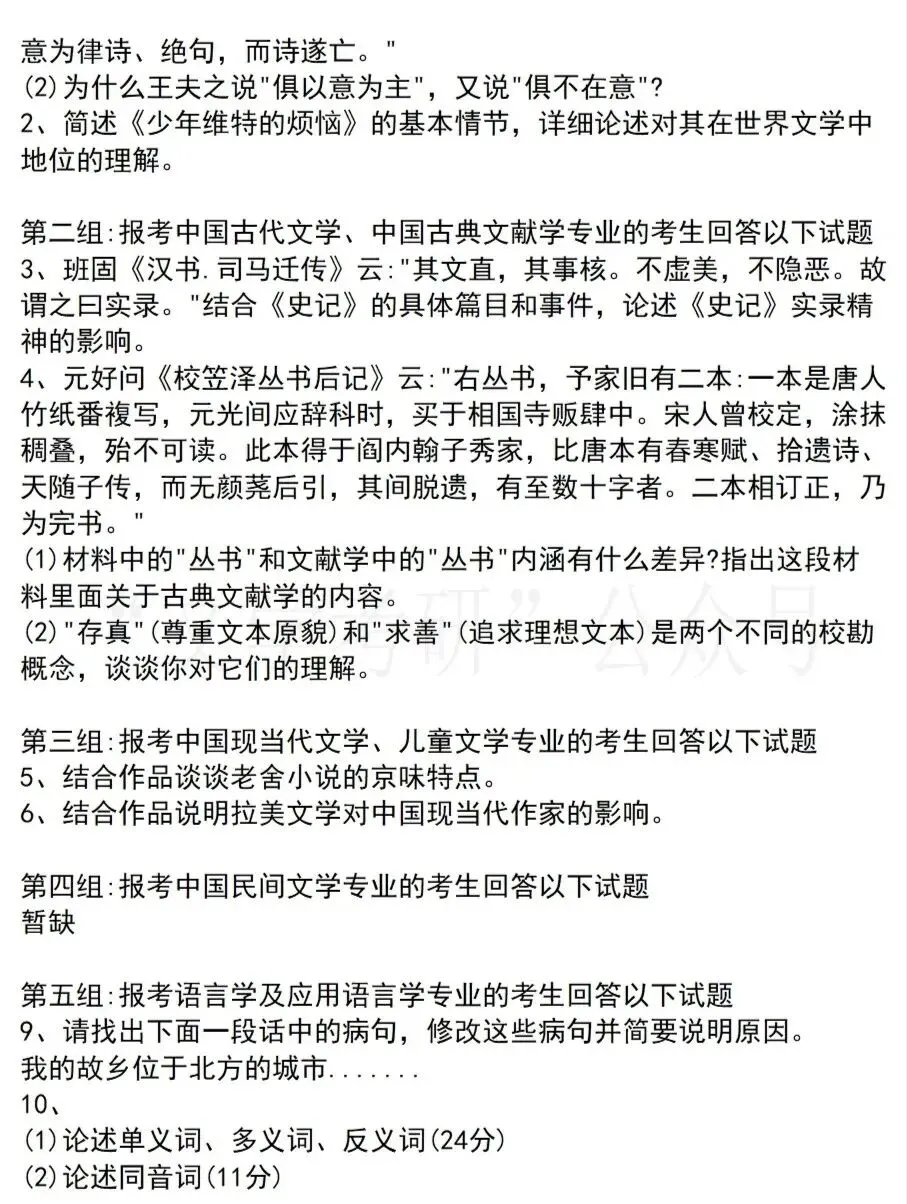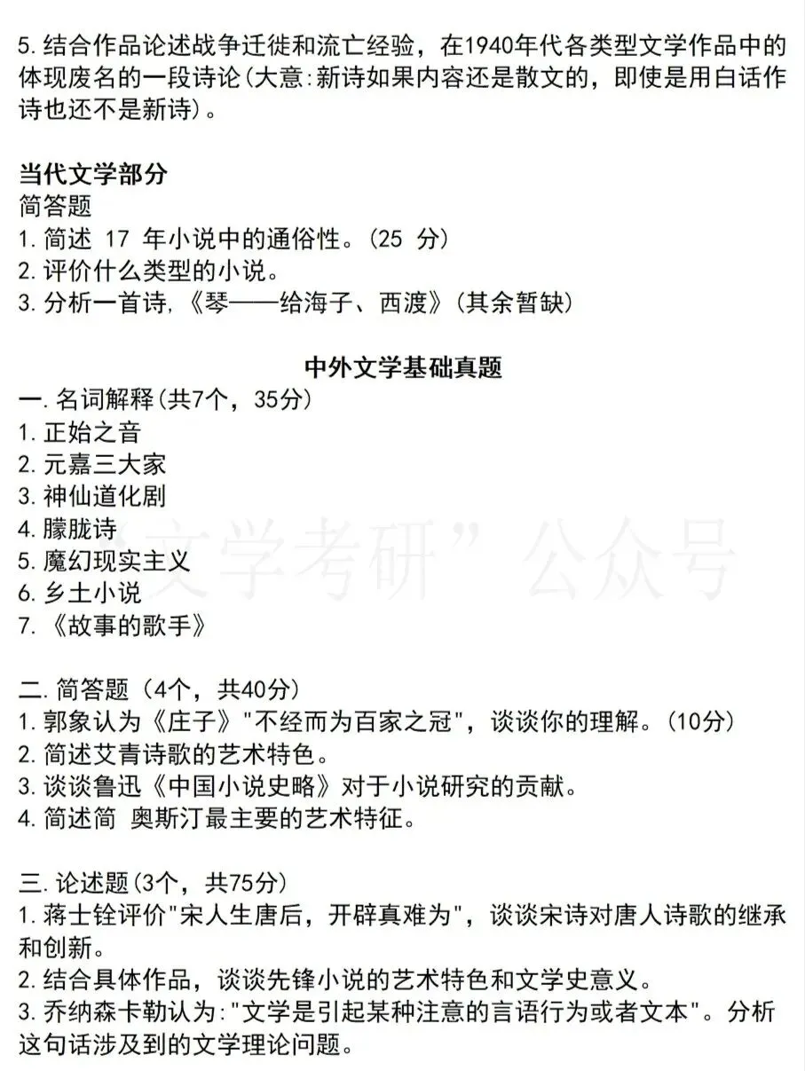 接下来我们来看一下这14所大学今年的文学考研真题是什么样子吧~