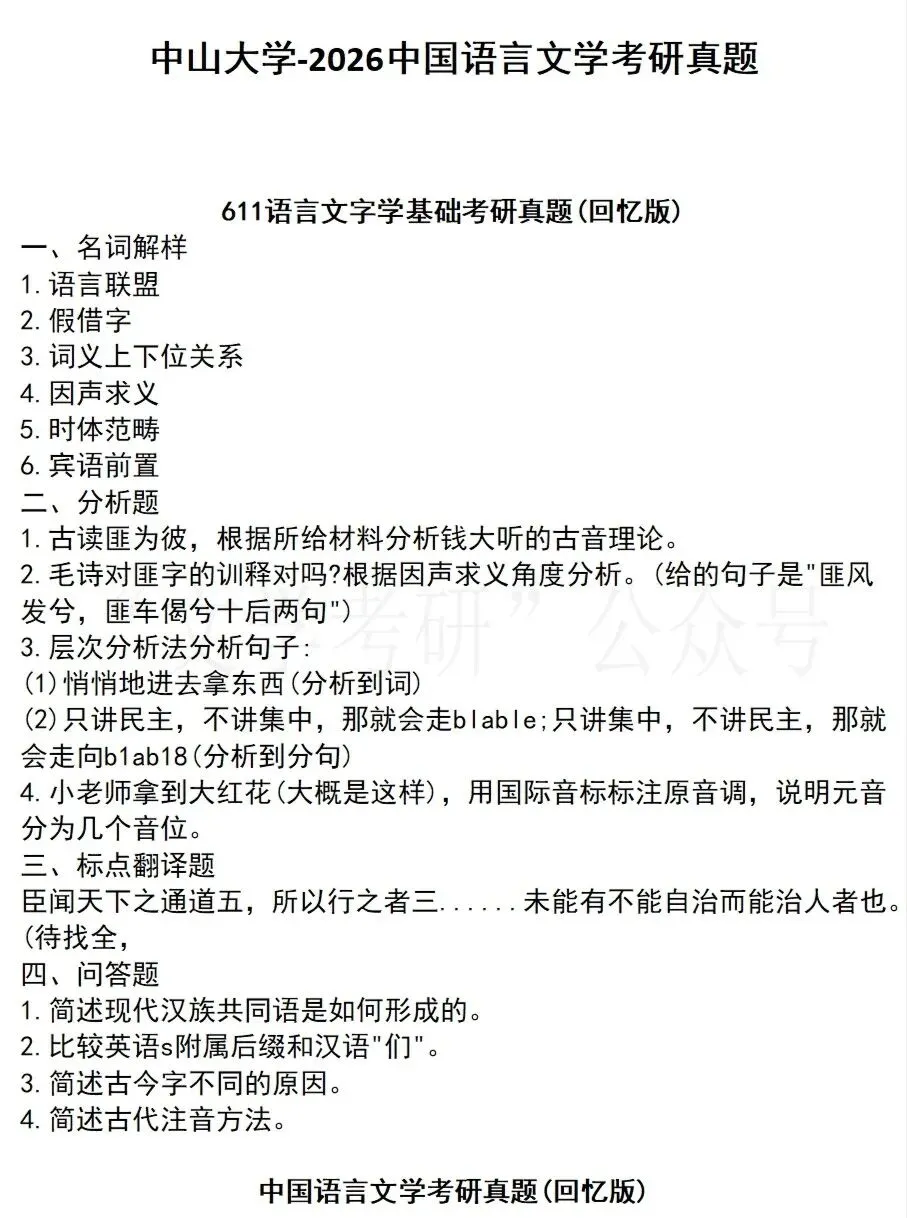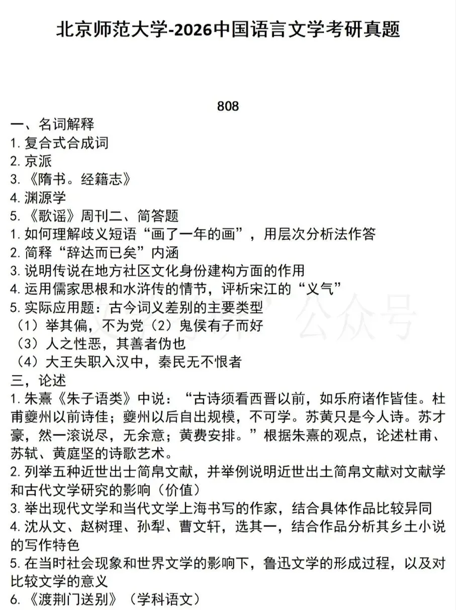 26北京师范大学文学考研真题(简要分析)