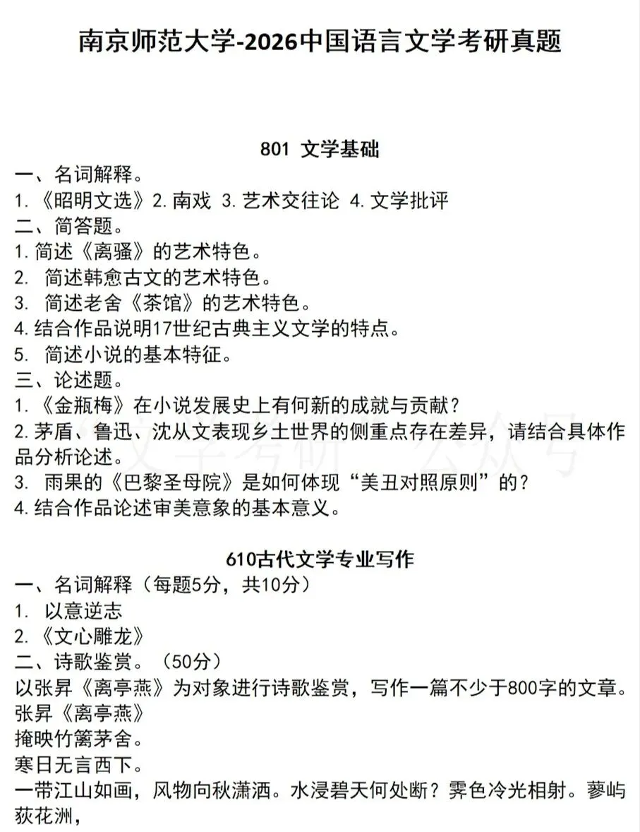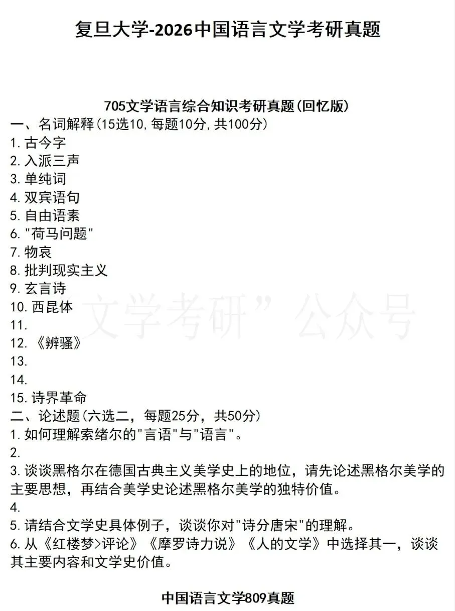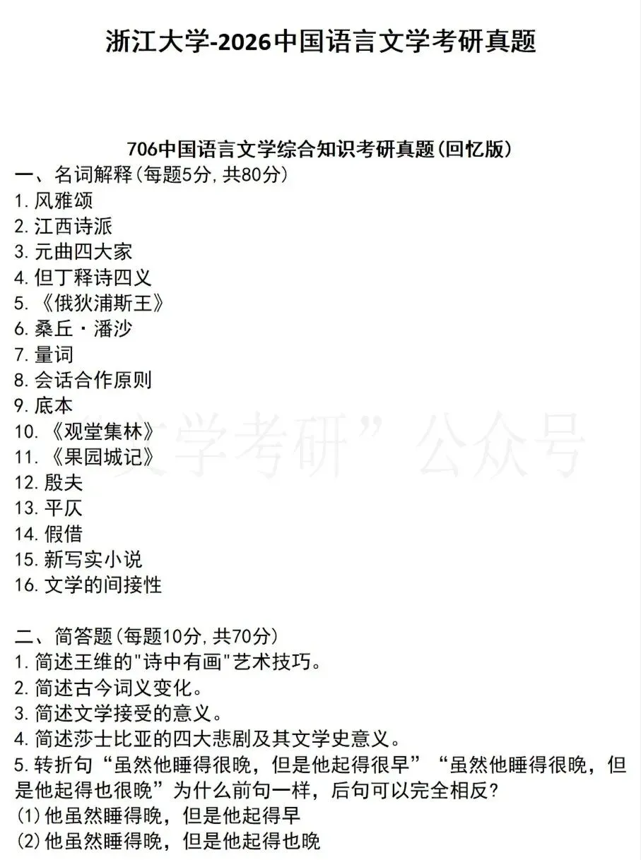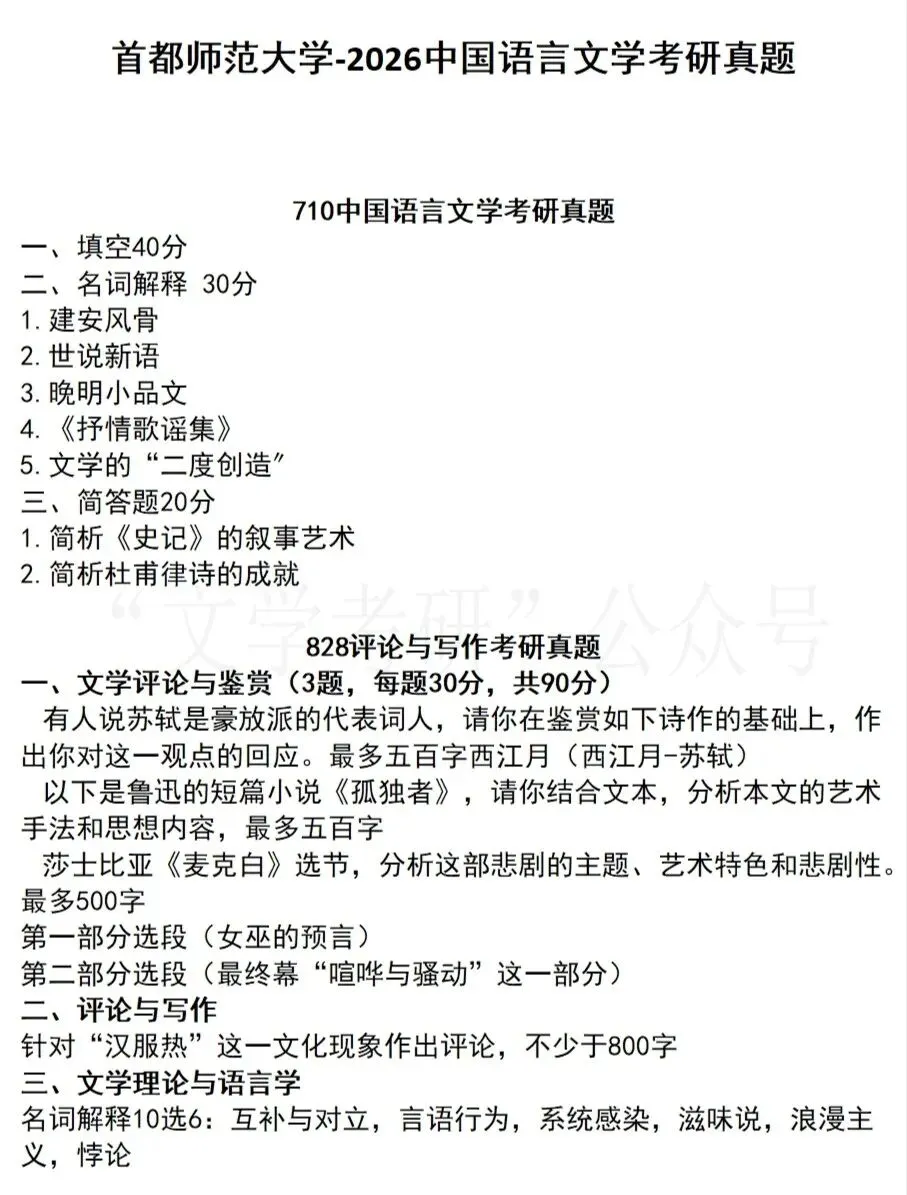 26华东师范大学文学考研真题(附25和简析)