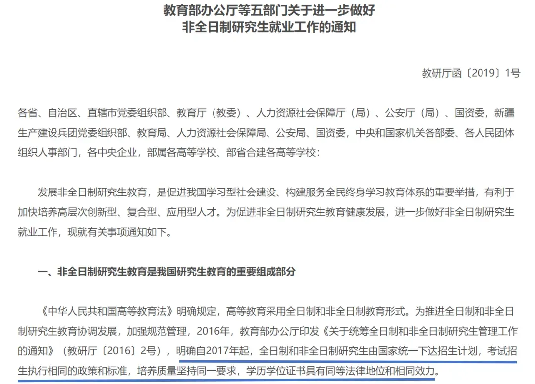 非全日制硕士研究生和全日制硕士研究生享有同等法律地位与权利。