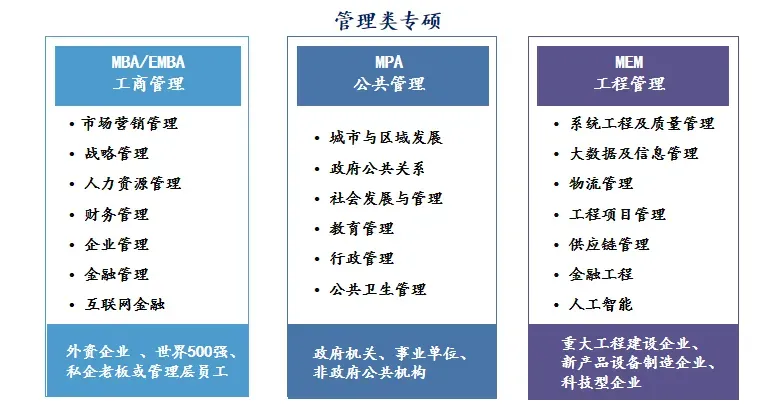 管理类专硕的专业涵盖很广,适合大多数企事业从业人员。