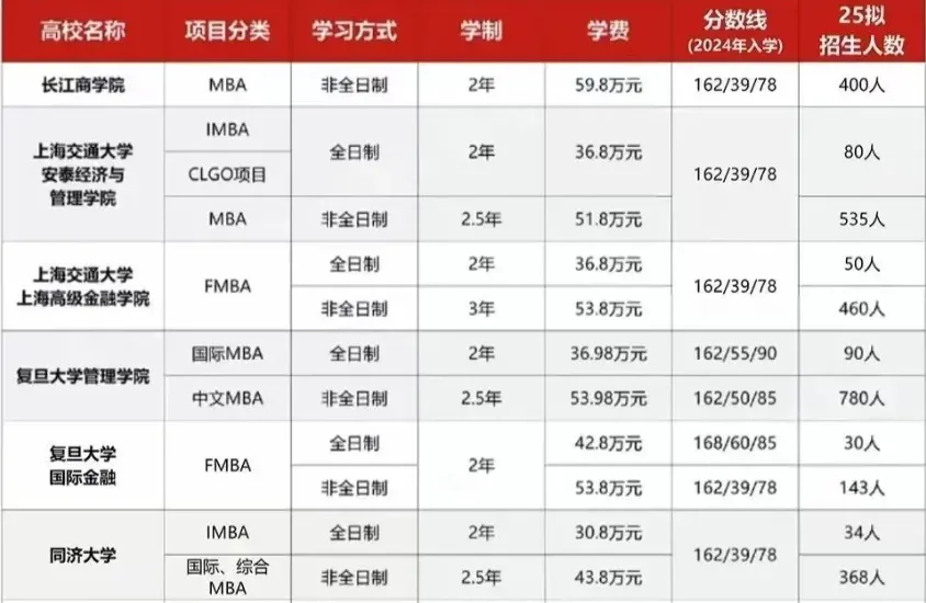 和其他只招十位数甚至个位数的专业相比,MBA等专业的招生名额较多。拿上海开设MBA项目的高校举例(参考去年数据):
