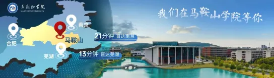 马鞍山学院坐落于全国文明城市——安徽省马鞍山市,毗邻江苏省南京市,是南京都市圈城市之一,正奋力打造安徽的“杭嘉湖”、长三角的“白菜心”,其山水秀丽,气候宜人,交通十分便利。
