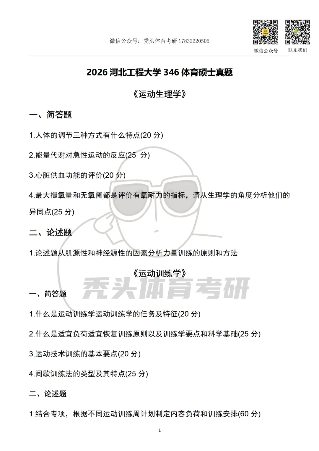 >26体育考研真题丨河北工程大学346初试真题(2026)