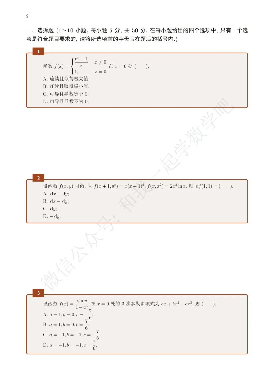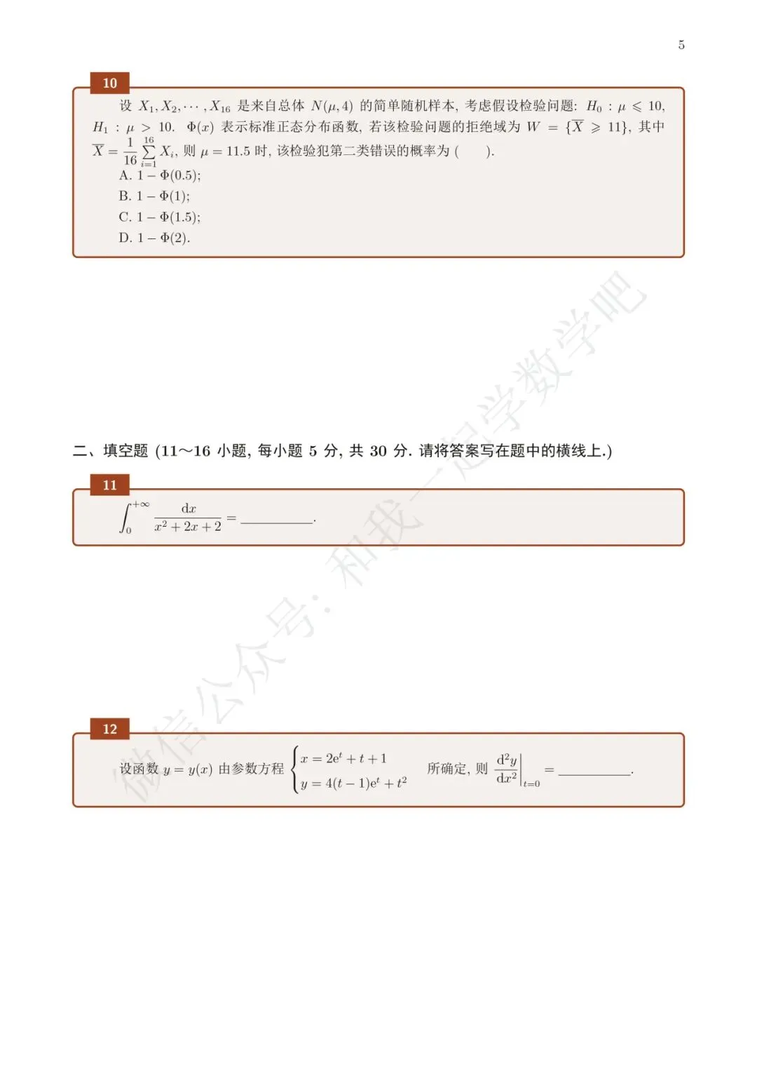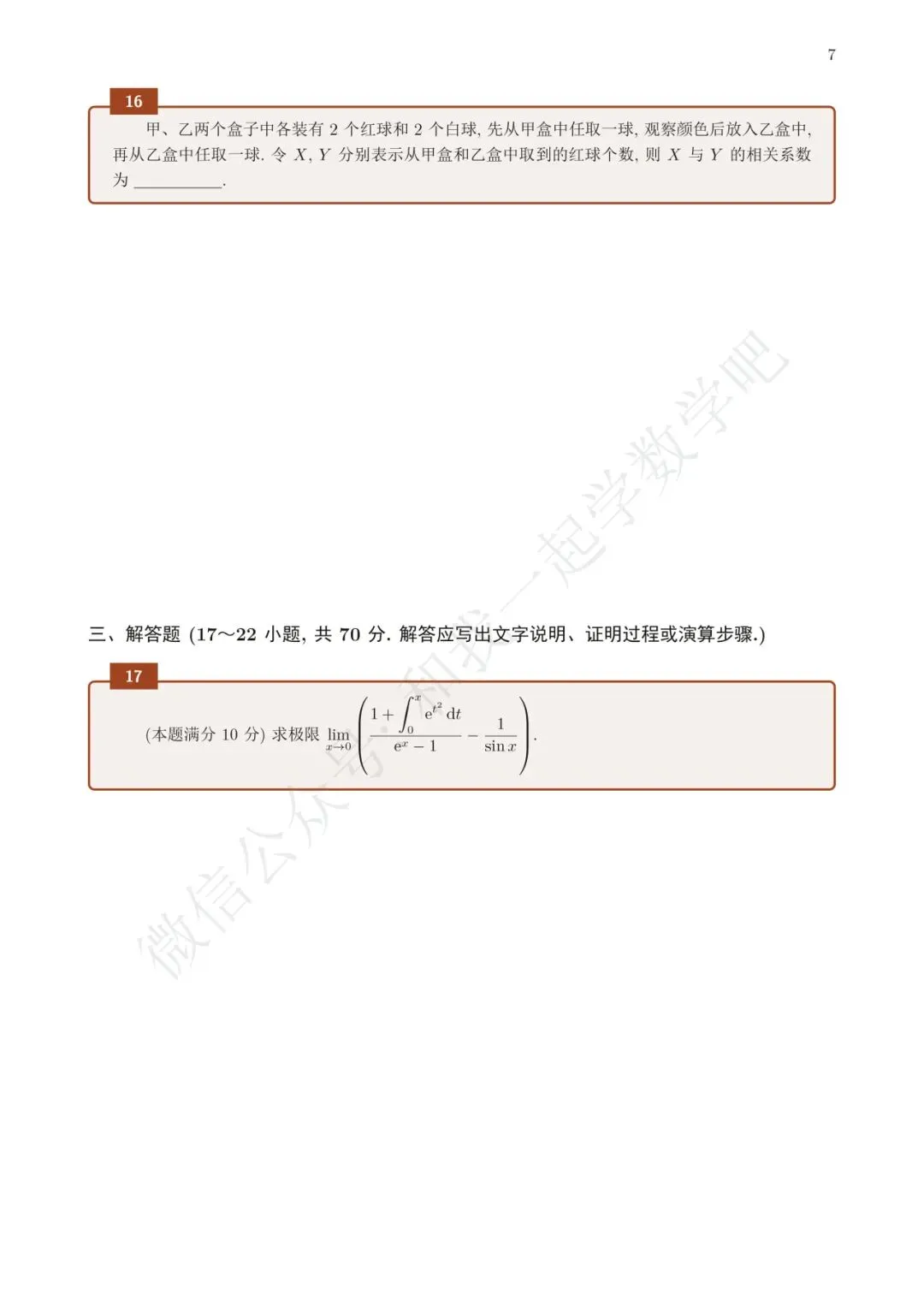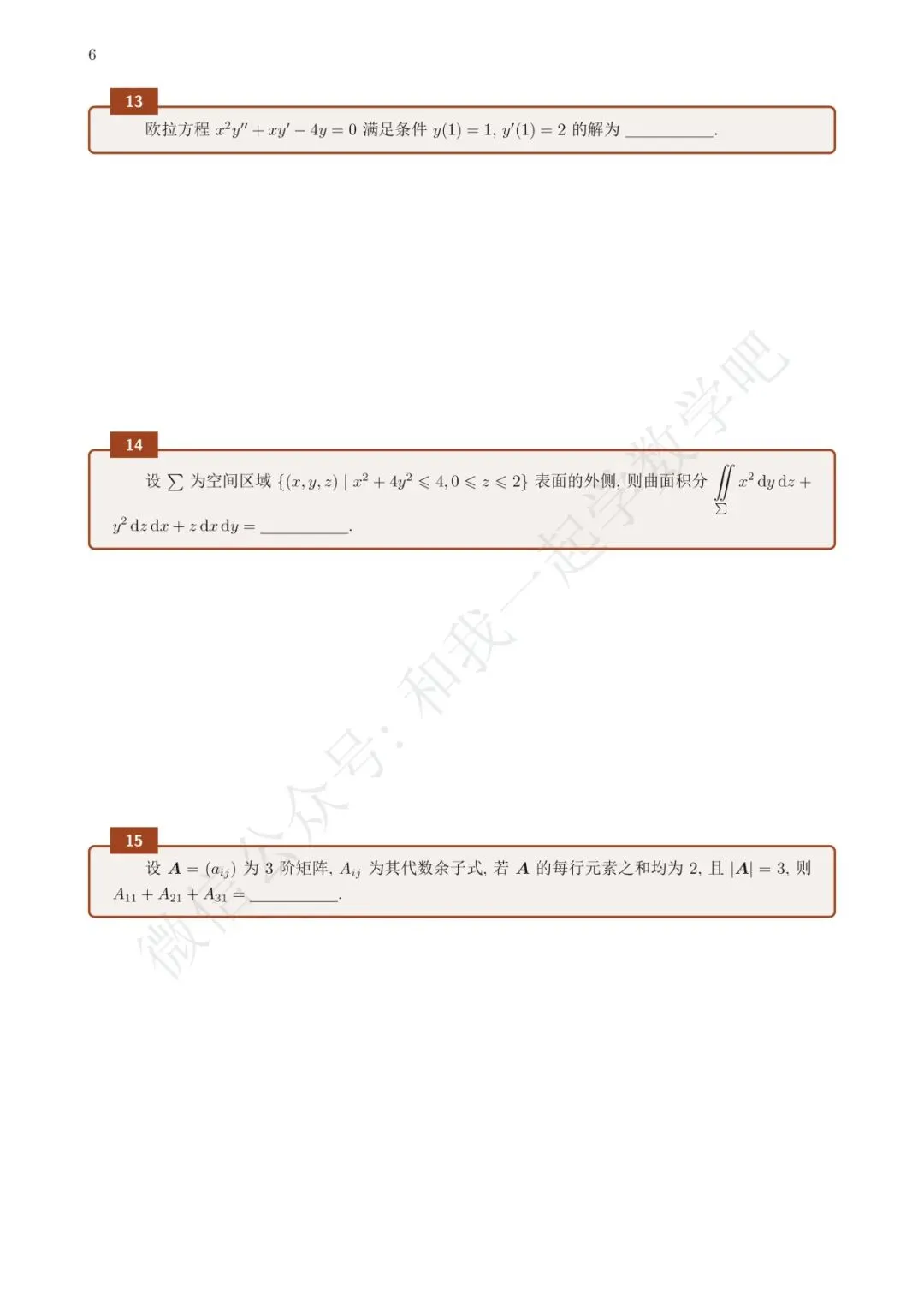 为了方便各位小伙伴们刷题,我重新排版了21年数一的真题,在每道题下面都增加了空白,方便大家写答案,记录相关知识点。