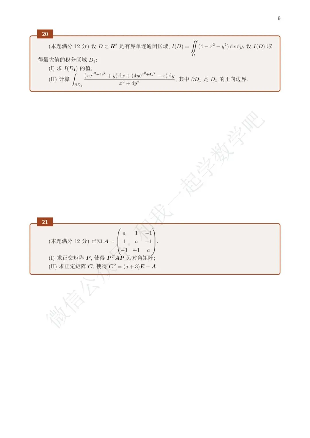 >21年考研数学真题(数一)