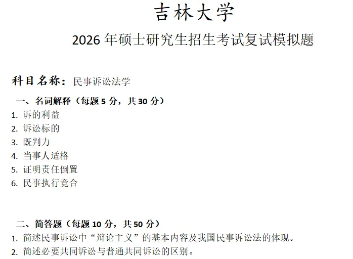 吉林大学民事诉讼法学考研复试真题模拟含答案